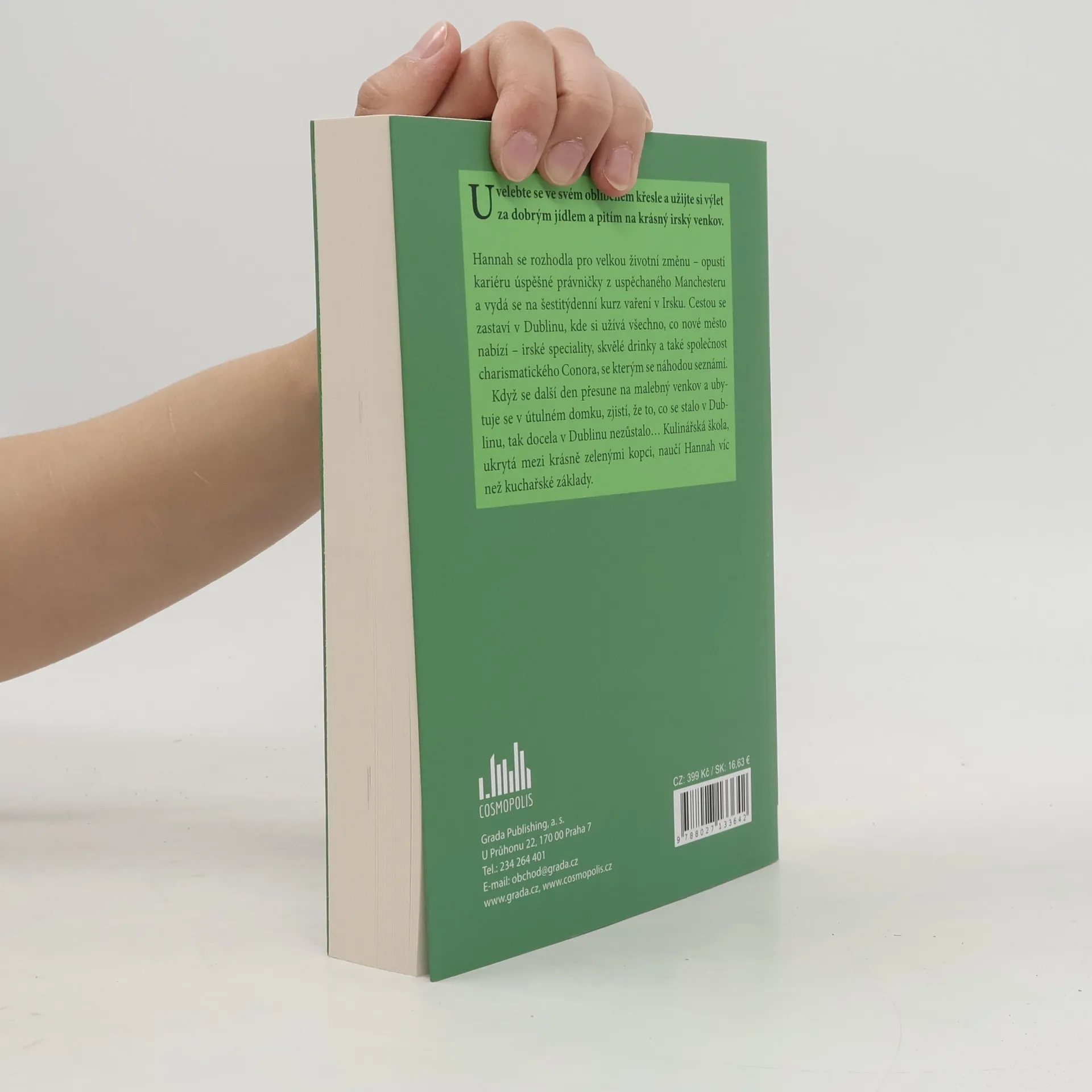 Uvelebte se v oblíbeném křesle a užijte si výlet za dobrým jídlem a pitím na krásný irský venkov. Hannah se rozhodla pro velkou životní změnu – vymění kariéru úspěšné právničky z uspěchaného Manchesteru za šestitýdenní kurz vaření v Irsku. Cestou se zastaví v Dublinu, kde si užívá všechno, co nové město nabízí – irské speciality, skvělé drinky a také společnost charismatického Conora, se kterým se náhodou seznámí. Když se další den přesune na malebný venkov a ubytuje se v útulném domku, zjistí, že to, co se stalo v Dublinu, tak docela v Dublinu nezůstalo… Kulinářská škola ukrytá mezi krásně zelenými kopci naučí Hannah víc než kuchařské základy.