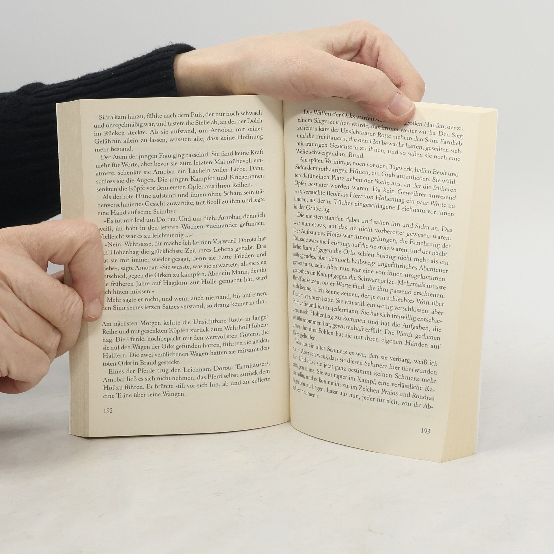 Beolf und Sidra, zwei Halbwüchsige aus dem Norden Andergasts, lieben einander, obwohl sie vielleicht Halbgeschwister sind. Als Sklaven der Orks müssen sie fünf Jahre lang durch die Orklandsteppe ziehen. Allein unter Schwarzpelzen, kostet es sie beinahe übermenschliche Kräfte, ihre Gefühle zu unterdrücken.§Doch dann gelingt ihnen die Flucht, und sie schwören Rache. Es gelingt ihnen, blutige Ernte unter den Orks im Grenzland zu halten. Bis sie erfahren, dass einer das Geheimnis ihrer Herkunft klären könnte: der alte Orkschamane, dem sie jahrelang dienen mussten.