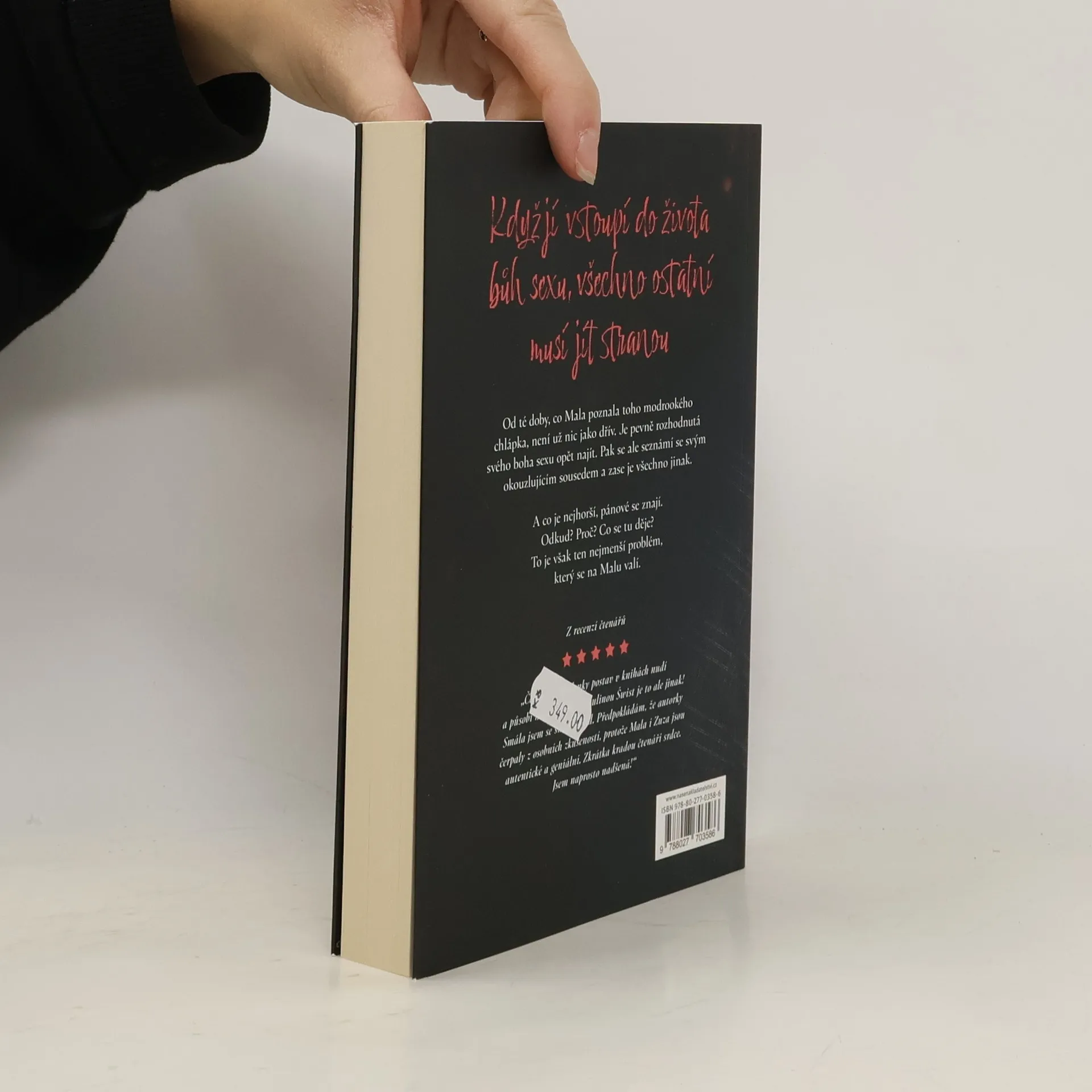 Když Mala pozná modrookého boha sexu, obrátí se její život vzhůru nohama. Zakouká se do něj a pak se zmatená a omámená rozhodne, že tohoto muže, který jí během půl hodiny poskytl více rozkoše než všichni její dosavadní chlapi dohromady, musí za každou cenu najít. Jako na potvoru se neznámo odkud vynoří „ten druhý“ – okouzlující, roztomilý a inteligentní soused, který je připraven učinit mnohé pro to, aby udržel dobré sousedské vztahy. Je lepší vrabec v hrsti, nebo holub na střeše? Ale to je asi nejmenší problém z těch, které se na Malu valí. Část z nich se týká i její nejlepší kamarádky Zuzy. A to se Male vůbec, ale vůbec nezamlouvá…