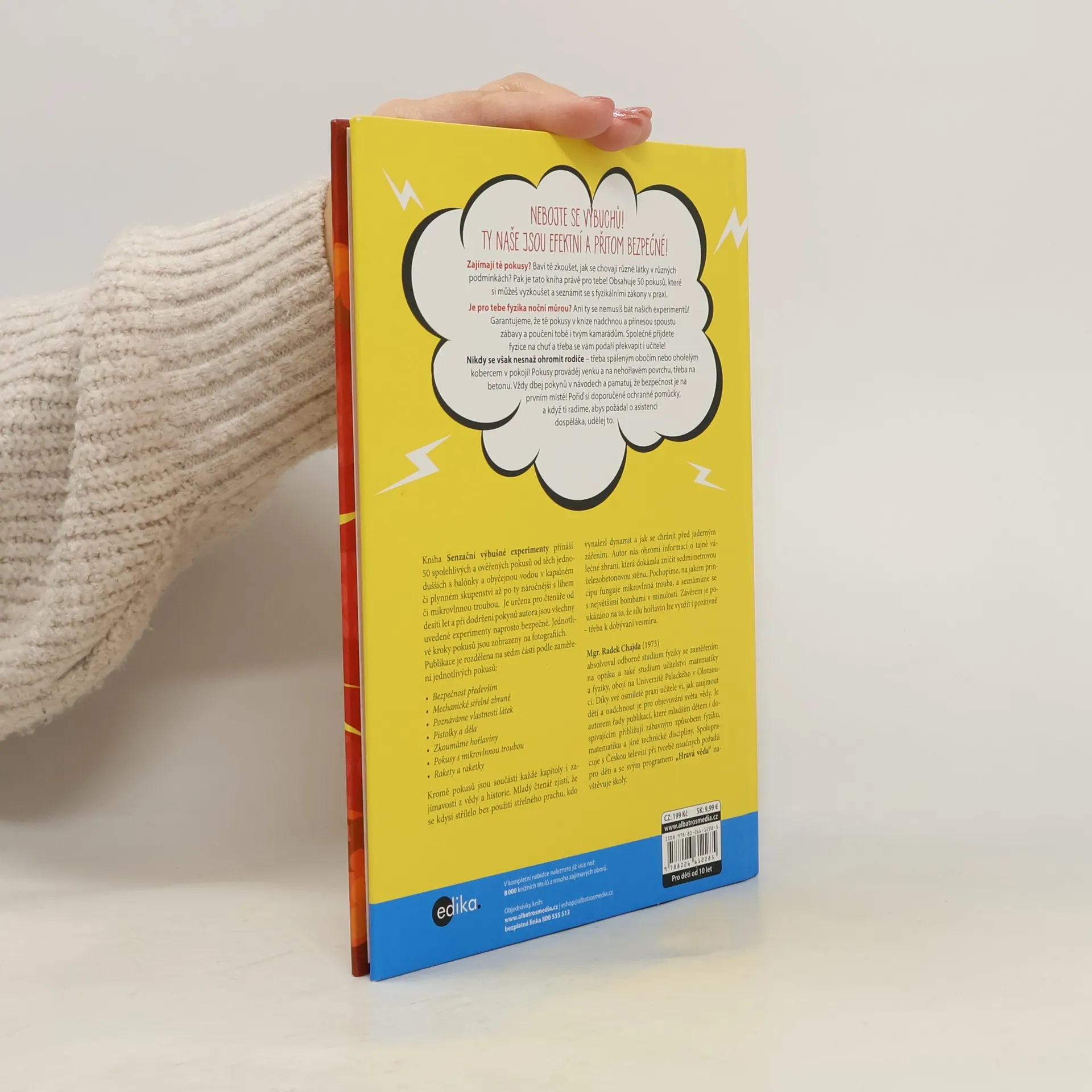 Knížka s celkem padesáti pokusy, na kterých si můžeš zábavnou formou ověřit fyzikální zákony v praxi. Budeš k tomu potřebovat běžně dostupné pomůcky jako třeba balónky, vodu, ocet či mikrovlnnou troubu. Každopádně si při testování užiješ spoustu legrace, ať už s kamarády, nebo i s dospěláky, které bys měl požádat o asistenci u pokusů, kde se pracuje s lihem či benzínem. Kniha je určena pro mladé výzkumníky od 10 let a při dodržení pokynů autora jsou všechny pokusy naprosto bezpečné.