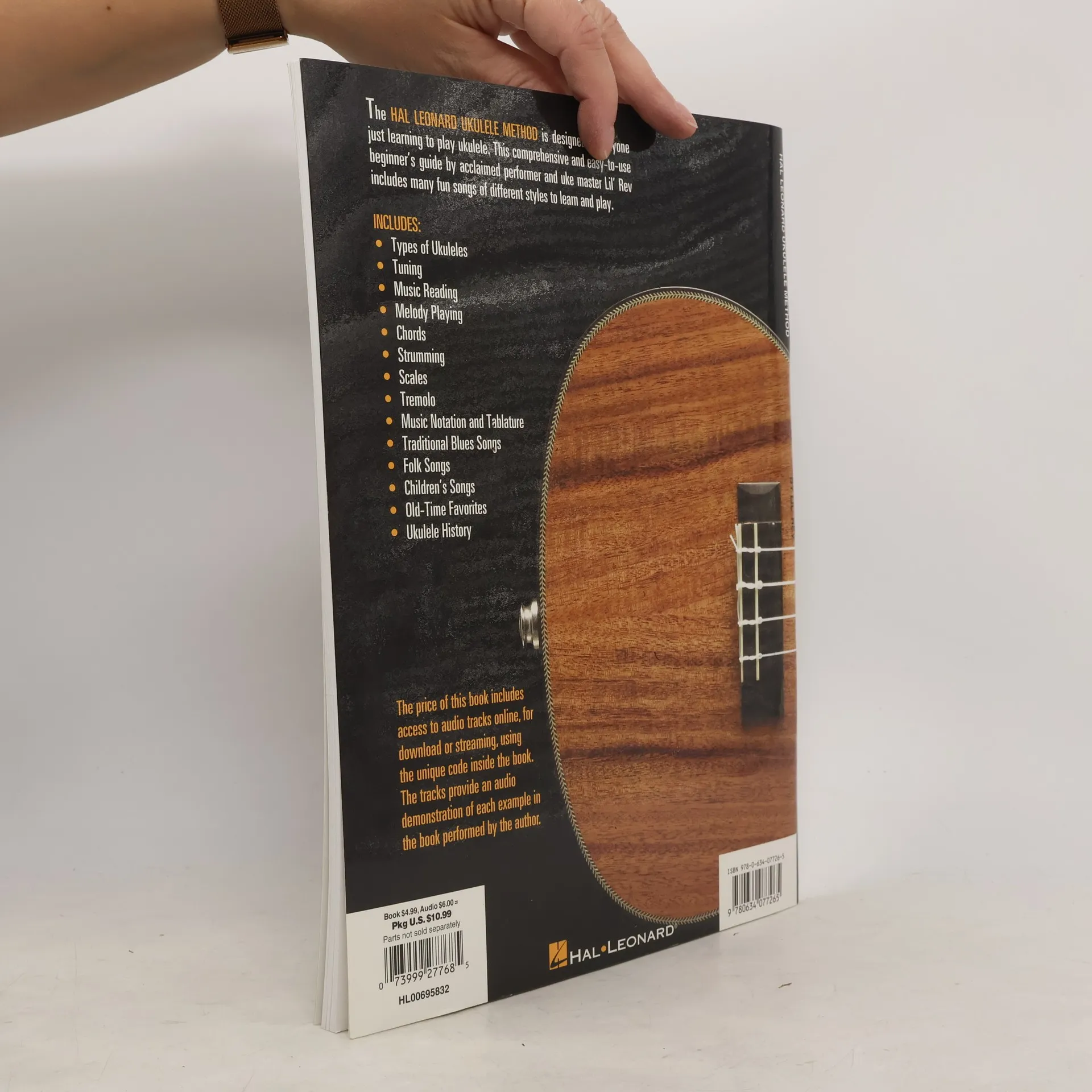 (Fretted). The Hal Leonard Ukulele Method is designed for anyone just learning to play ukulele. This comprehensive and easy-to-use beginner's guide by acclaimed performer and uke master Lil' Rev includes many fun songs of different styles to learn and play. The accompanying CD contains 46 tracks of songs for demonstration and play along. Includes: types of ukuleles, tuning, music reading, melody playing, chords, strumming, scales, tremolo, music notation and tablature, a variety of music styles, ukulele history and much more.