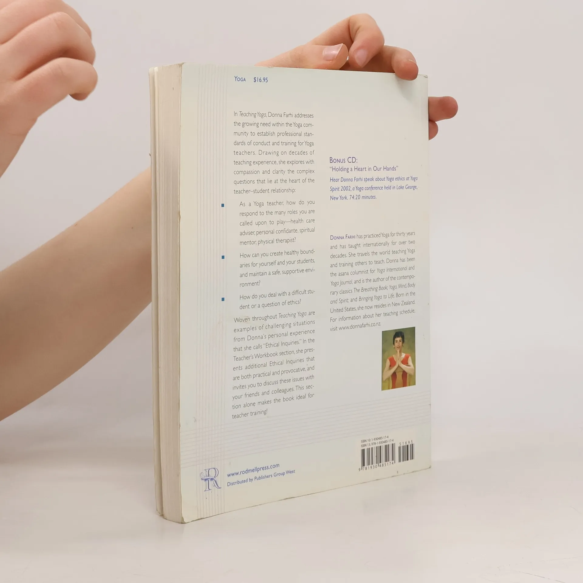 Drawing on decades of experience training yoga teachers and cowriting the California Yoga Teachers Association (CYTA) code of ethics, Donna Farhi offers the first book to set professional standards for teaching yoga. Teaching Yoga explores with depth and compassion a variety of topics both practical and philosophical, including how to create healthy boundaries; the student-teacher relationship (including whether a sexual relationship is acceptable); how to create physical and emotional safety for the student; what is a reasonable class size; how much a class should cost; and how to conduct the business of teaching while upholding the integrity of Yoga as a philosophy, a science, and an art. A bonus CD features the author speaking about yoga ethics at a 2002 conference.