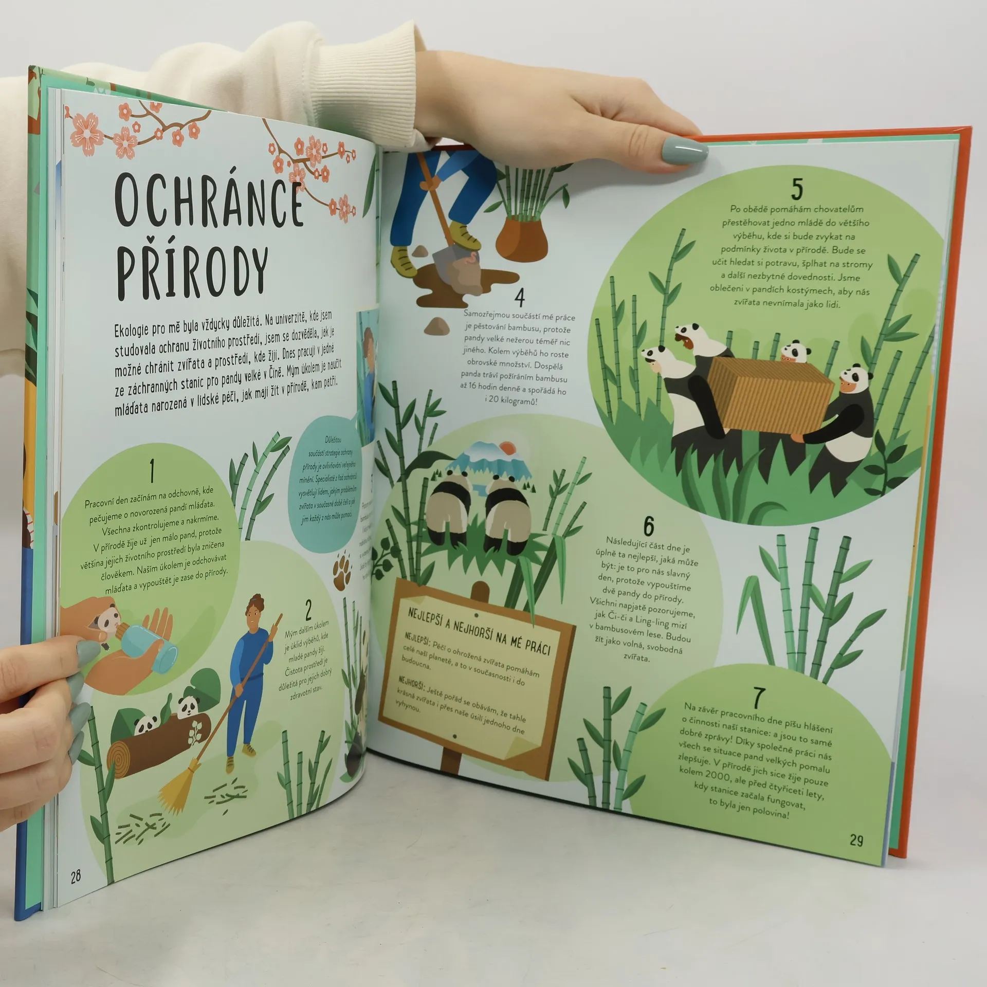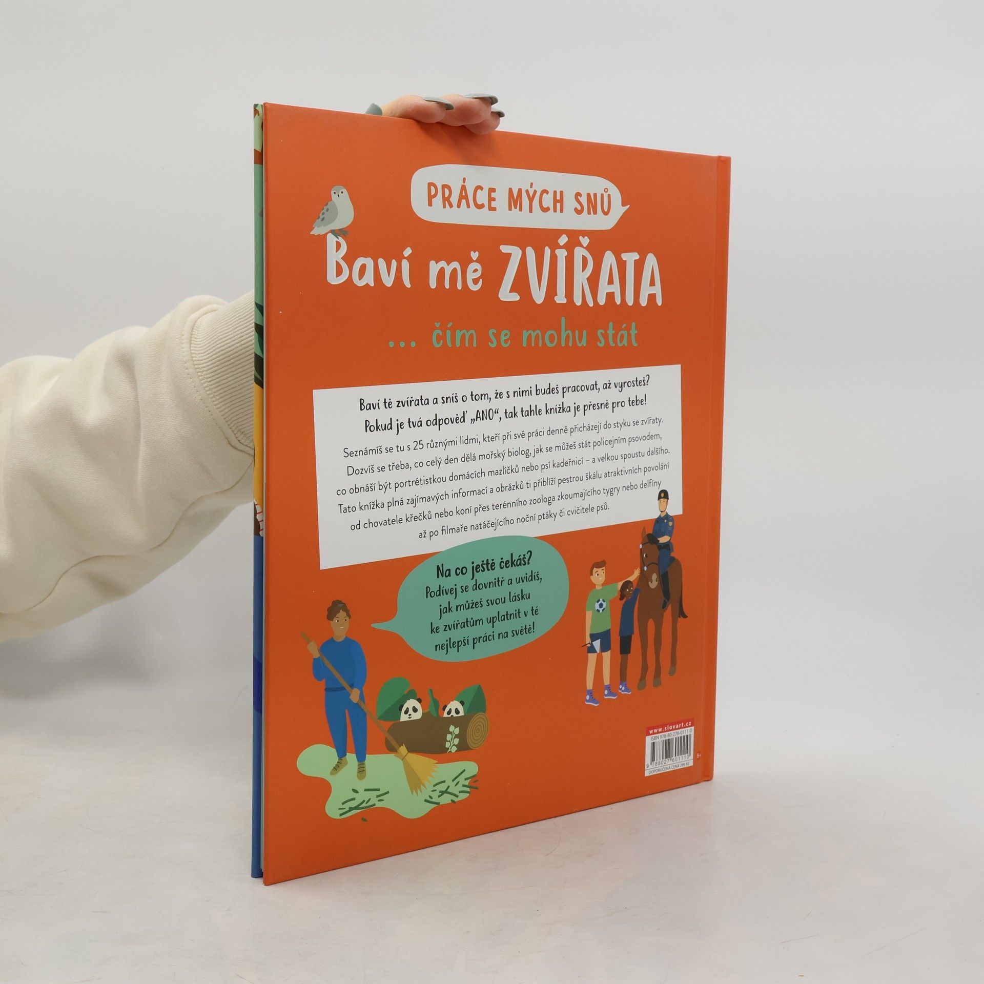 Baví tě starat se o zvířata, pozorovat je, hrát si s nimi, nebo je dokonce fotografovat či kreslit? Sníš o tom, že s nimi budeš pracovat, až vyrosteš? Pokud je tvá odpověď ano, tak tahle knížka je přesně pro tebe! Seznámíš se tu s 25 lidmi, kteří při práci denně přicházejí do styku se zvířaty. Dozvíš se třeba, co celý den dělá pracovník ve zvířecím útulku nebo mořský biolog, jak se můžeš stát policejním psovodem nebo veterinářem, co obnáší být portrétistou domácích mazlíčků nebo entomologem, jaké povinnosti čekají chovatele v zoo a mnoho dalšího. Knížka plná zajímavých informací a obrázků ti přiblíží pestrou škálu atraktivních povolání od chovatele křečků nebo koní přes terénního zoologa zkoumajícího tygry nebo delfíny až po filmaře nočních ptáků nebo cvičitele psů. V knize uvidíš, jak svou lásku ke zvířatům můžeš uplatnit v nejlepší práci na světě! Tedy pro tebe, když tě baví zvířata.