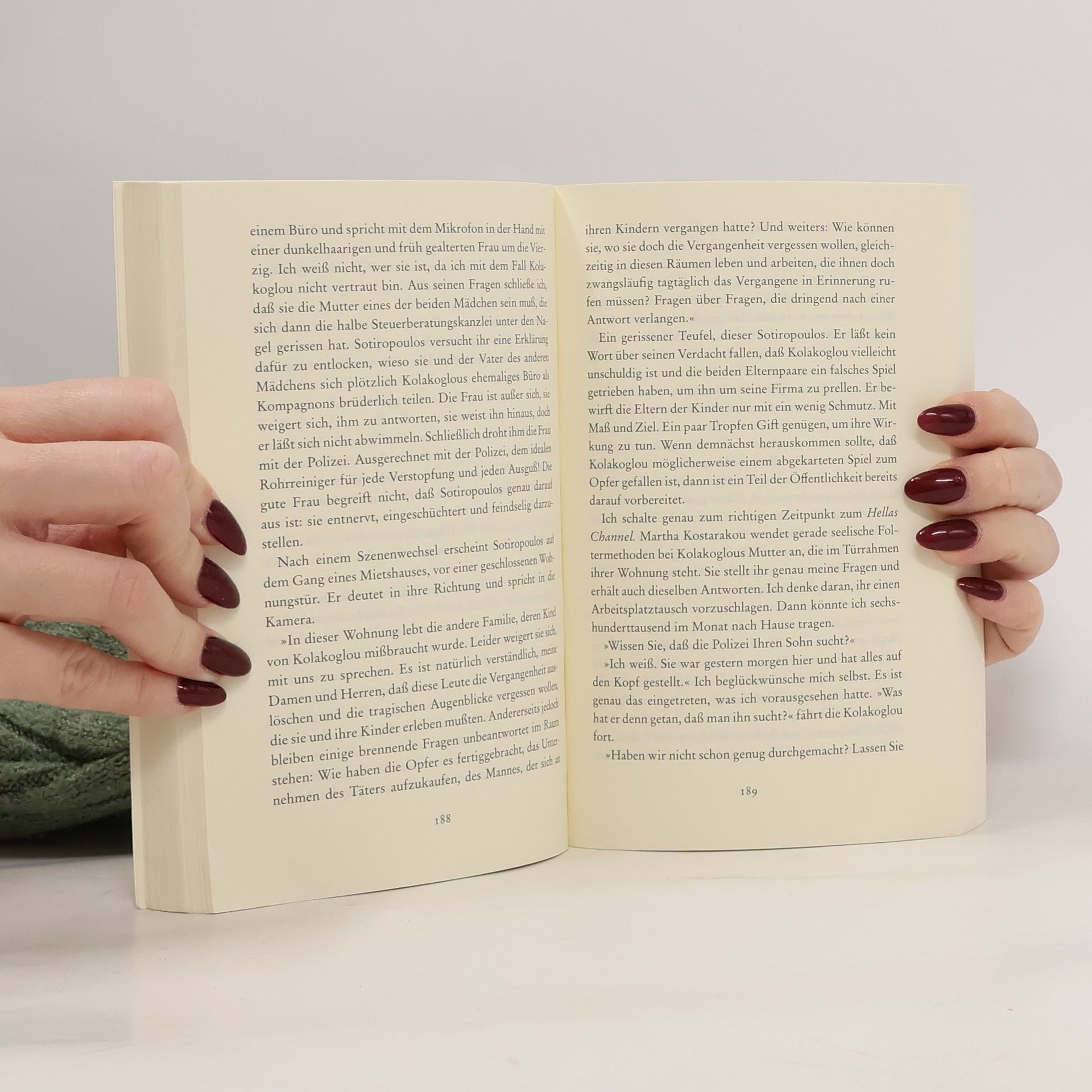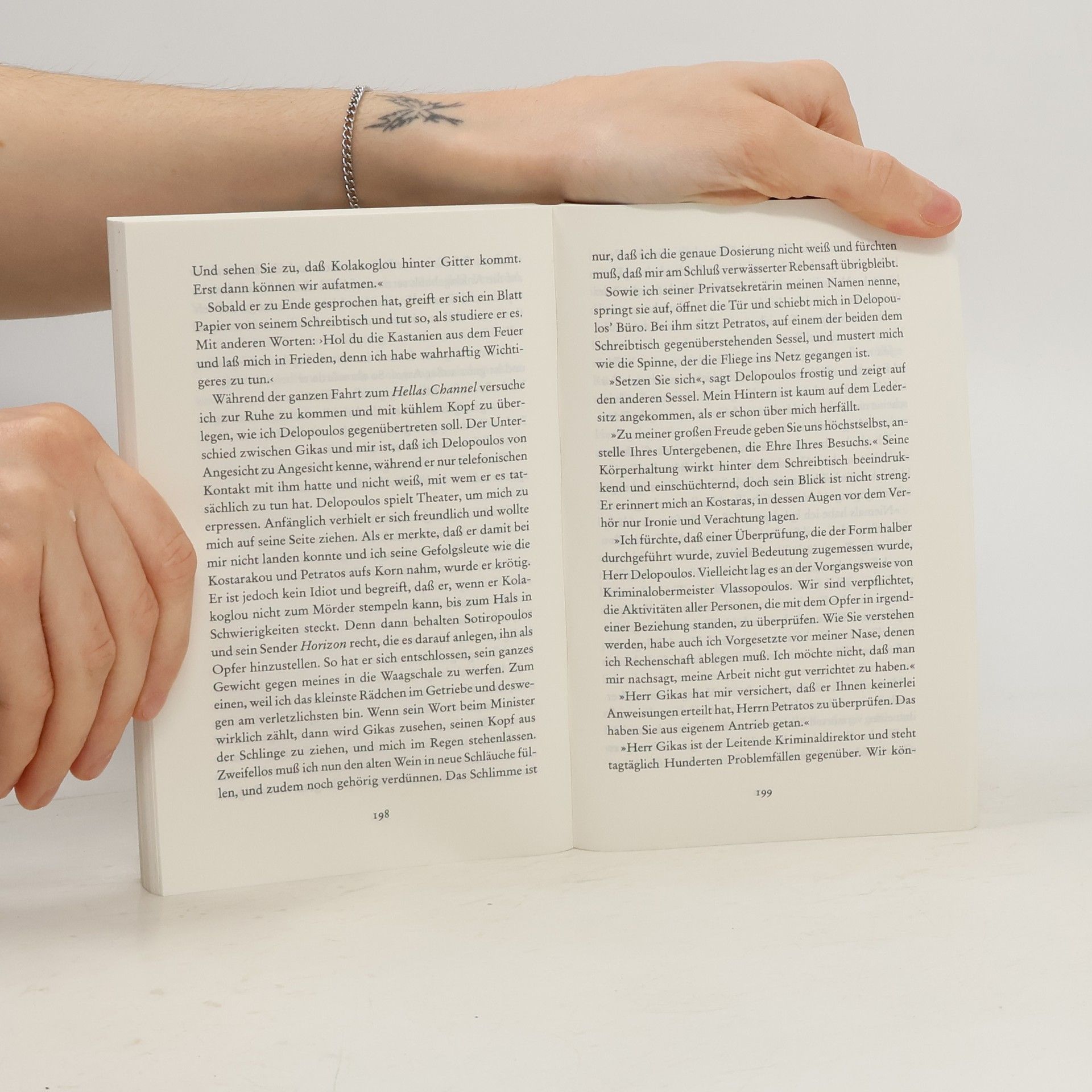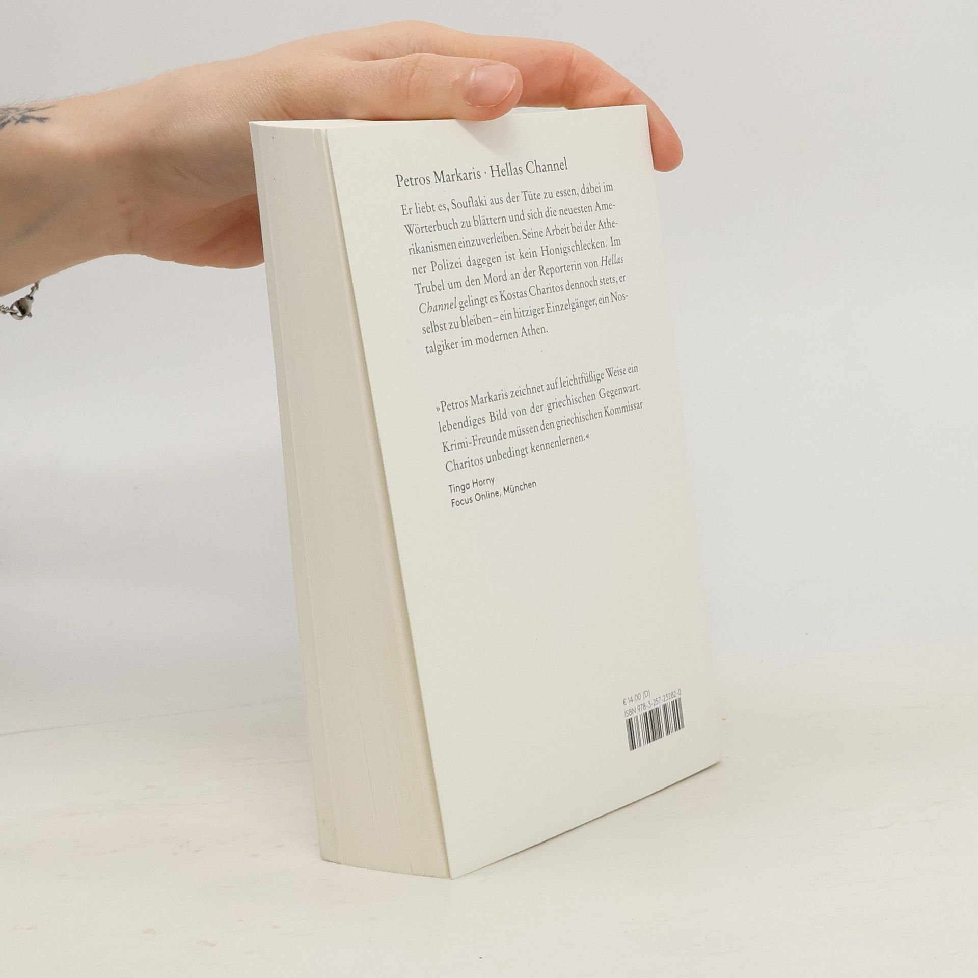 Er liebt es, Souflaki aus der Tüte zu essen, dabei im Wörterbuch zu blättern und sich die neuesten Amerikanismen einzuverleiben. Seine Arbeit bei der Athener Polizei dagegen ist kein Honigschlecken. Im Trubel um den Mord an der Reporterin von Hellas Channel gelingt es Kostas Charitos dennoch stets, er selbst zu bleiben ein hitziger Einzelgänger, ein Nostalgiker im modernen Athen. "