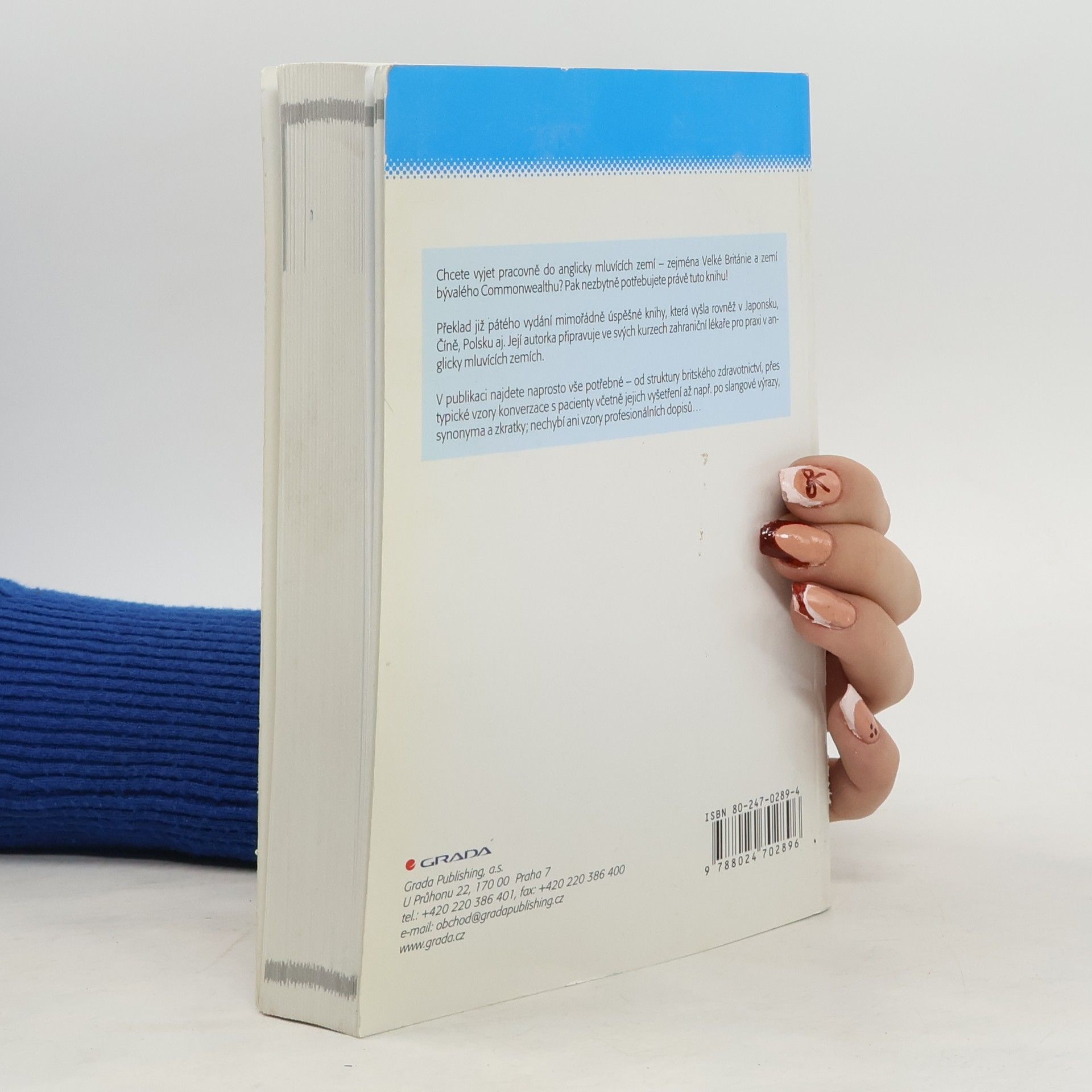 Potřebujete mluvit s anglicky mluvícím kolegou (lékařem, zdravotníkem) či pacientem? Nebo snad máte v úmyslu vyjet pracovně do anglicky mluvících zemí - zejména Velké Britanie a zemí bývalého Commonwealthu? Pak nezbytně potřebujete právě tuto knihu! Překlad pátého vydání mimořádně úspěšné knihy autorky, která připravuje ve svých kurzech zahraniční lékaře pro praxi v anglicky mluvících zemích. Kniha vyšla již v Japonsku, Číně i Polsku. V knize najdete naprosto vše potřebné - od struktury britského zdravotnictví, přes typické vzory konverzace s pacienty včetně jejich vyšetření až po slangové výrazy, synonyma a zkratky, nechybí ani vzory profesionálních dopisů... (manuál pro praxi)