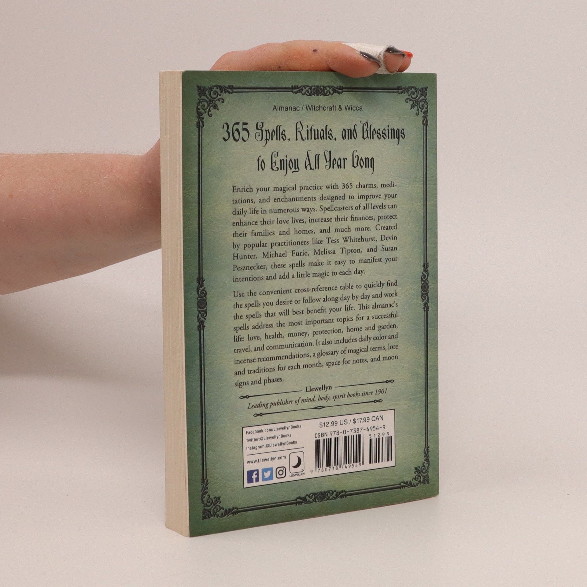 Enjoy a new spell every day with Llewellyn's 2020 Witches' Spell-A-Day Almanac. Spellcasters of all levels can enhance their daily life with these easy bewitchments, recipes, rituals, and meditations. These 365 spells--supplied by popular magic practitioners like Tess Whitehurst, Raven Digitalis, Thuri Calafia, Melissa Tipton, Kate Freuler, Charlie Rainbow Wolf, Jason and Ari Mankey--require minimal supplies and are helpful for every occasion. For convenience, the 365 spells are cross-referenced by purpose, including love, health, money, protection, home and garden, travel, and communication. Discover beginner-friendly advice on the best time, place, and tools for performing each spell. Apply daily color and incense recommendations and astrological data to enhance each day's magic. And with space to jot down notes, this unique spell book can be used as a Book of Shadows.