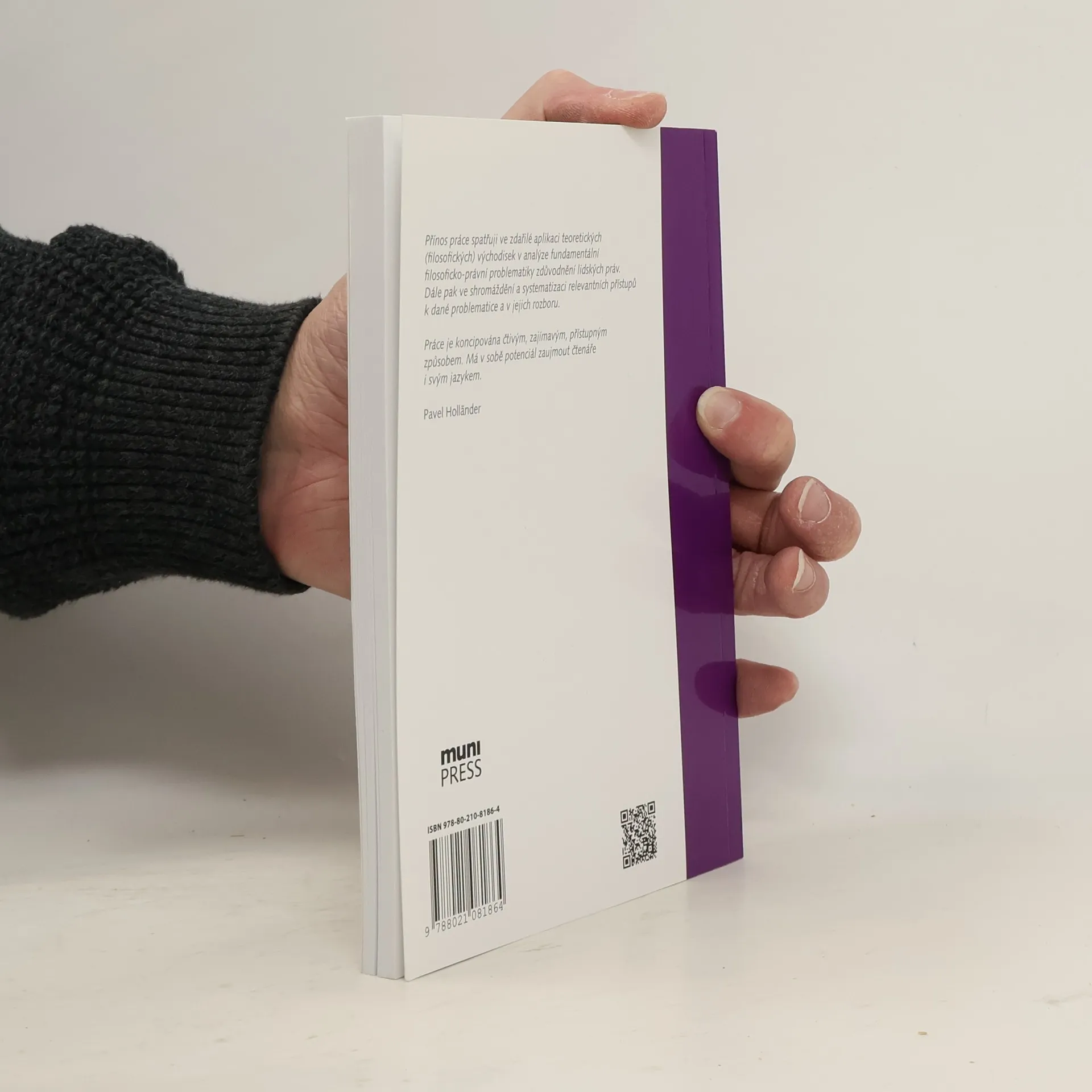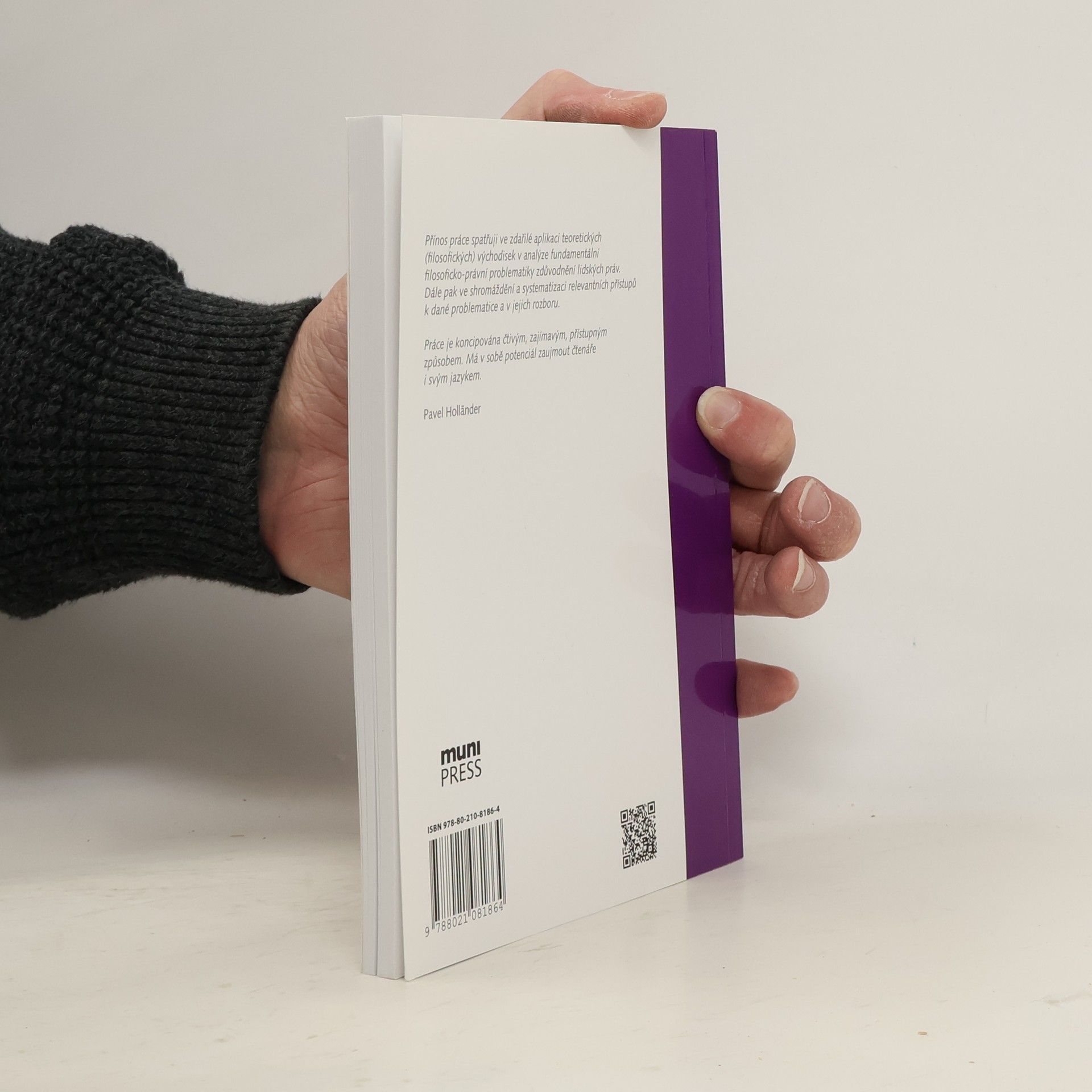 Tato práce se věnuje problematice zdůvodnění lidských práv v postmoderní době. Její klíčovou otázkou je, zda jsou tato práva nevyhnutelně metafyzickým nebo náboženským konceptem, který je v kontextu naší současnosti již obtížně obhajitelný. Autor nejprve rozebírá pojmy lidských práv, jejich legitimity a zdůvodnění. Velký prostor přitom vyčleňuje problému jejich univerzality a vymezení různých metodologických přístupů ke zkoumání jejich ospravedlnění. Následně rozebírá různé způsoby zdůvodnění těchto práv, mimo jiné pojetí Michaela J. Perryho a Alana Gewirtha, které vykazují nejsilnější metafyzické konotace. Práci uzavírá kapitola o postojích Richarda Rortyho coby příklad přístupu, který usiluje o vymanění se z metafyziky.