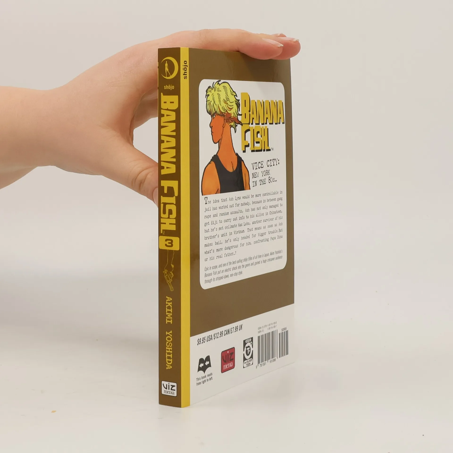Nature made Ash beautiful; Nurture made him a killer!VICE CITY: NEW YORK IN THE 80s... Nature made Ash Lynx beautiful; nurture made him a cold ruthless killer. A runaway brought up as the adopted heir and sex toy of Papa Dino Golzine, Ash, now at the rebellious age of seventeen, forsakes the kingdom held out by the devil who raised him. But the hideous secret that drove Ash's older brother mad in Vietnam has suddenly fallen into Papa's insatiably ambitious hands--and it's exactly the wrong time for Eiji Okamura, a pure- hearted young photographer from Japan, to make Ash Lynx's acquaintance... Epic in scope, and one of the best-selling shojo titles of all time in Japan, Akimi Yoshida put an electric shock into the genre and gained a huge crossover audience through Banana Fish's stripped-down, non-stop style.The idea that Ash Lynx would be more controllable in jail has worked out for nobody, because in between gang rape and random assaults, Ash has not only managed to get Eiji to carry out info to his allies in Chinatown, but he's met cellmate Max Lobo, another survivor of his brother's unit in Vietnam. That means as soon as Ash makes bail, he's only headed for bigger trouble. But what's more dangerous for him, confronting Papa Dino or his real father...?
