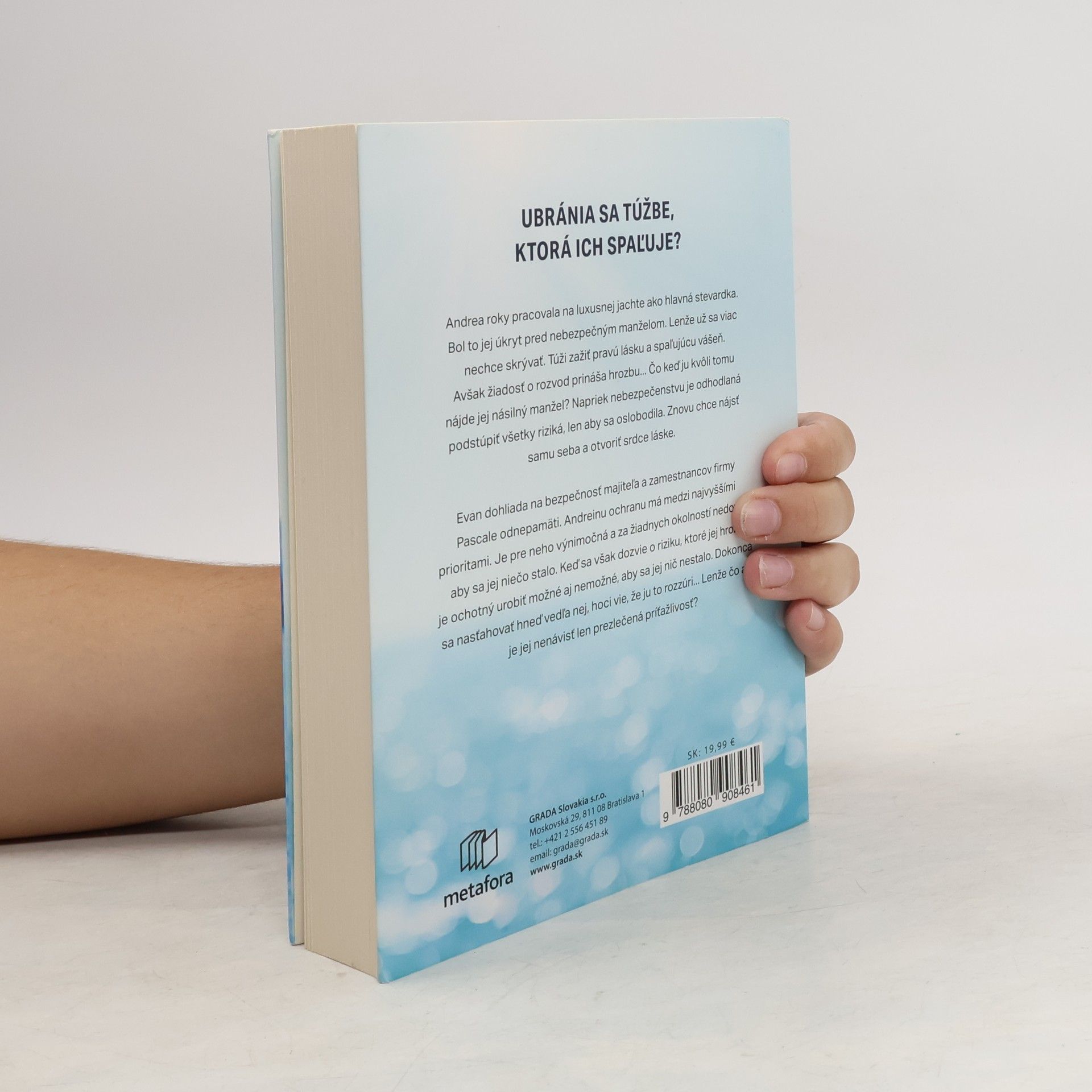 Andrea roky pracovala na luxusnej jachte ako hlavná stevardka. Bol to jej úkryt pred nebezpečným manželom. Lenže už sa viac nechce skrývať. Túži zažiť pravú lásku a spaľujúcu vášeň. Avšak žiadosť o rozvod prináša hrozbu... Čo keď ju kvôli tomu nájde jej násilný manžel? Napriek nebezpečenstvu je odhodlaná podstúpiť všetky riziká, len aby sa oslobodila. Znovu chce nájsť samu seba a otvoriť srdce láske. Evan dohliada na bezpečnosť majiteľa a zamestnancov firmy Pascale odnepamäti. Andreinu ochranu má medzi najvyššími prioritami. Je pre neho výnimočná a za žiadnych okolností nedovolí, aby sa jej niečo stalo. Keď sa však dozvie o riziku, ktoré jej hrozí, je ochotný urobiť možné aj nemožné, aby sa jej nič nestalo. Dokonca sa nasťahovať hneď vedľa nej, hoci vie, že ju to rozzúri... Lenže čo ak je jej nenávisť len prezlečená príťažlivosť?
