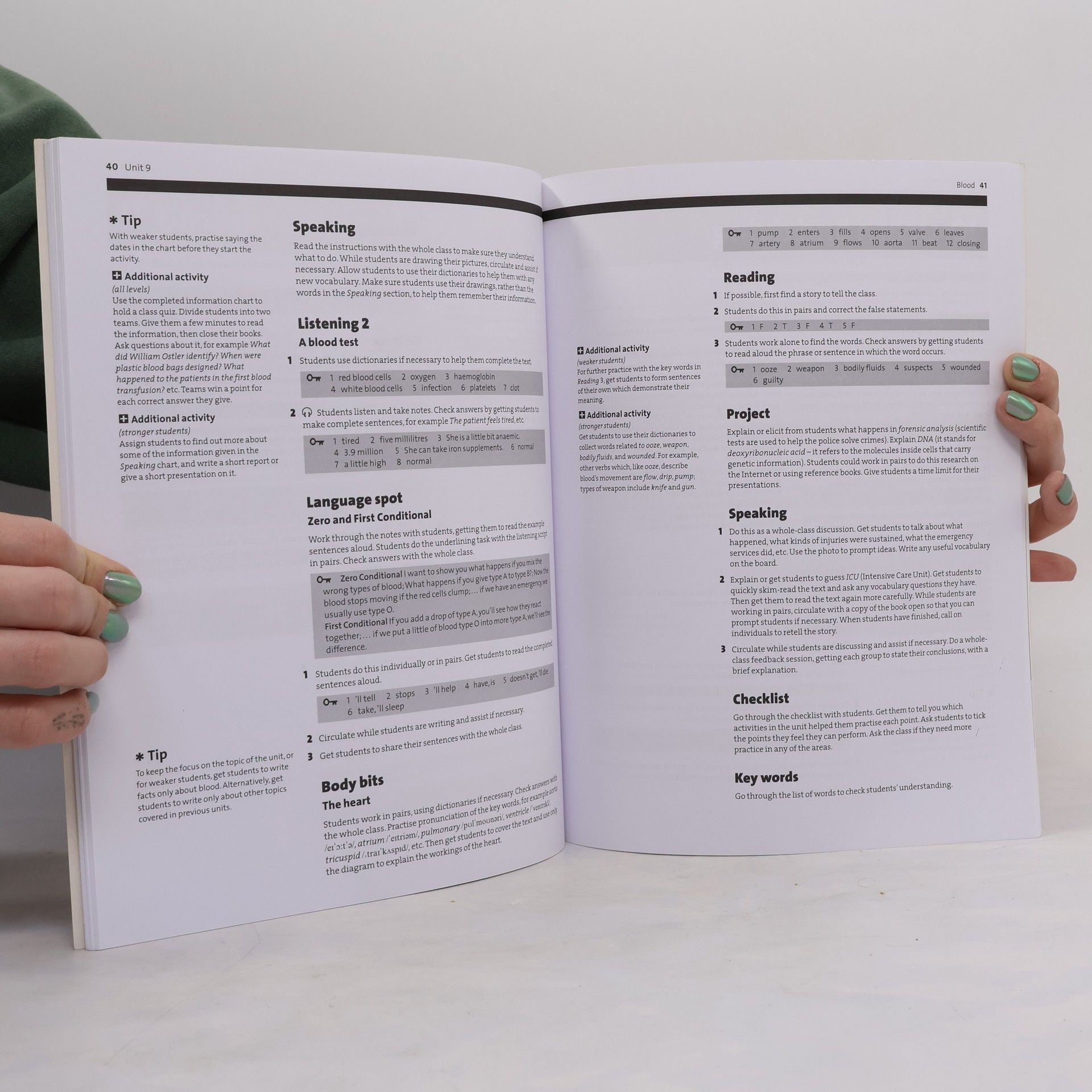 Nursing is ideal for pre-work students, studying at pre-intermediate to intermediate level, who will need to use English in work situations. It is also suitable for qualified nurses thinking of working in English-speaking countries. Nursing develops the vocabulary, language, and skills that students will need when working in a medical environment. These include talking about the body, describing signs of illness, and conveying instructions to patients and colleagues.
