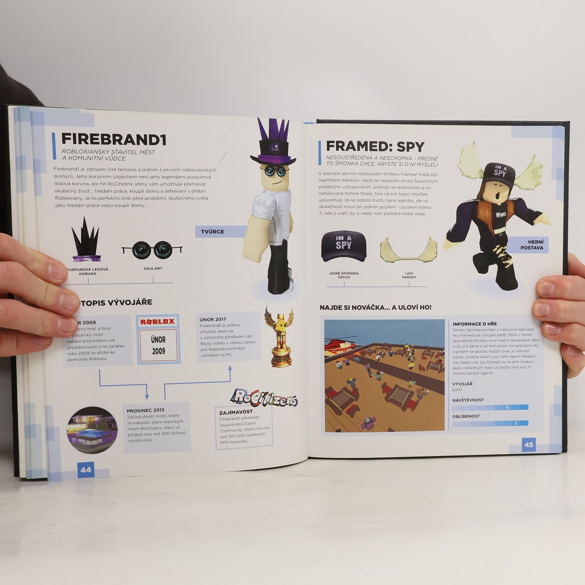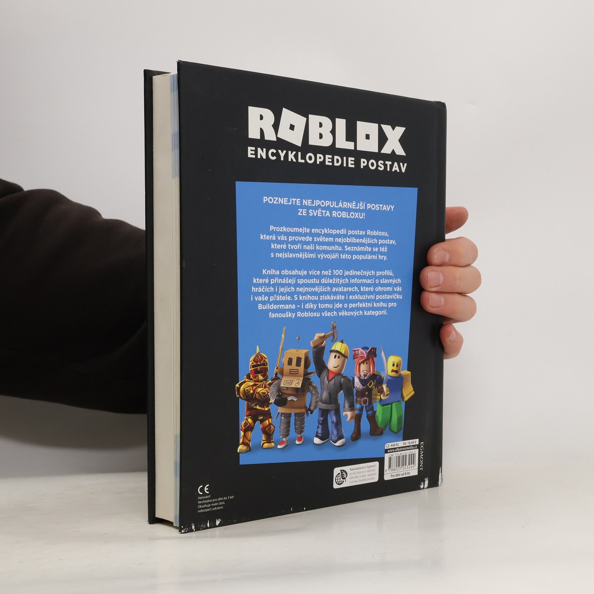 „Pronikněte s námi do fascinujícího světa Robloxu!" Prozkoumejte s námi encyklopedii postav Robloxu! Kniha obsahuje více než 100 jedinečných profilů, které přinášejí spoustu důležitých informací o slavných hráčích i jejich nejnovějších avatarech, navíc se seznámíte s nejslavnějšími vývojáři a získáte exkluzivní postavičku Outrageous Buildermana – i díky tomu jde o nepostradatelnou knihu pro fanoušky Robloxu všech věkových kategorií!