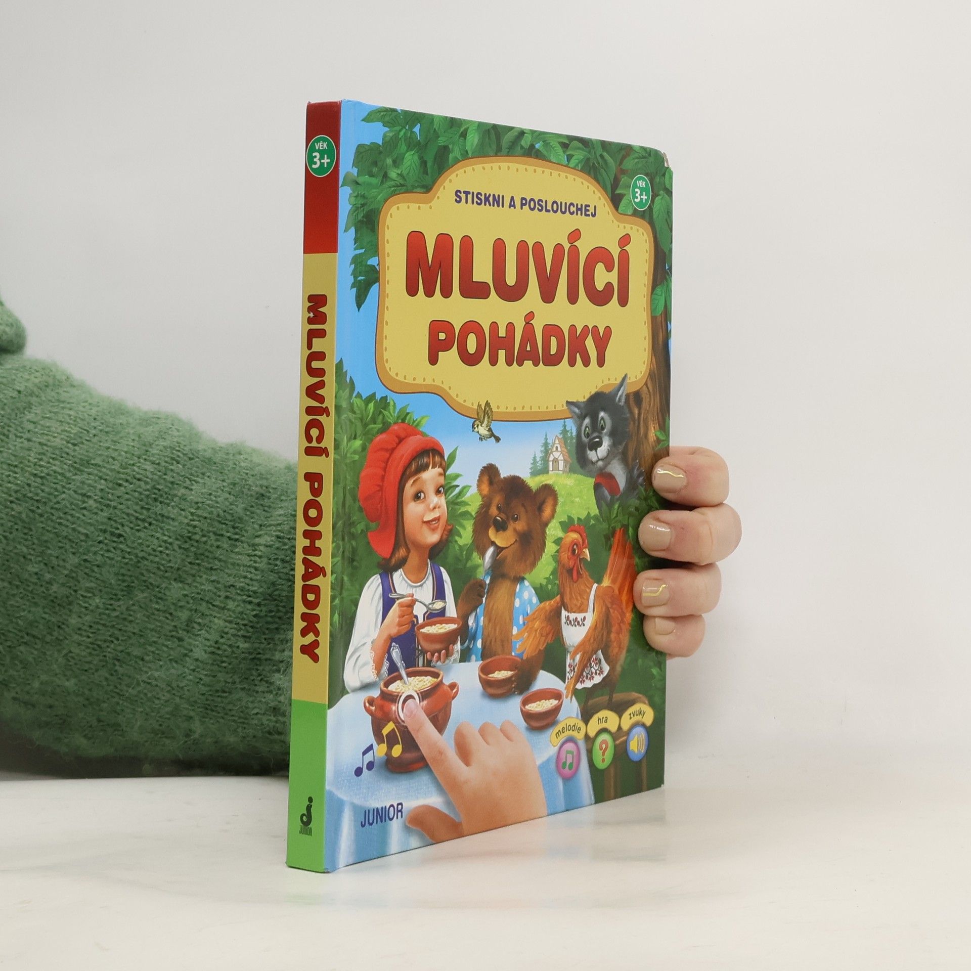 50 zvukových obrázků. Perníková chaloupka, O Červené karkulce, Hrnečku vař! O panáčkovi z perníku… to jsou některé z oblíbených pohádek, které najdeš v knížce Mluvící pohádky. Tato kniha je navíc kouzelná – obrázky v ní umí mluvit! Při čtení pohádky stačí stisknout obrázek a uslyšíš hlasy a zvuky. Zábavná hra Uhodni zvuk a veselé tóny už na tebe čekají! Pro děti od tří let.