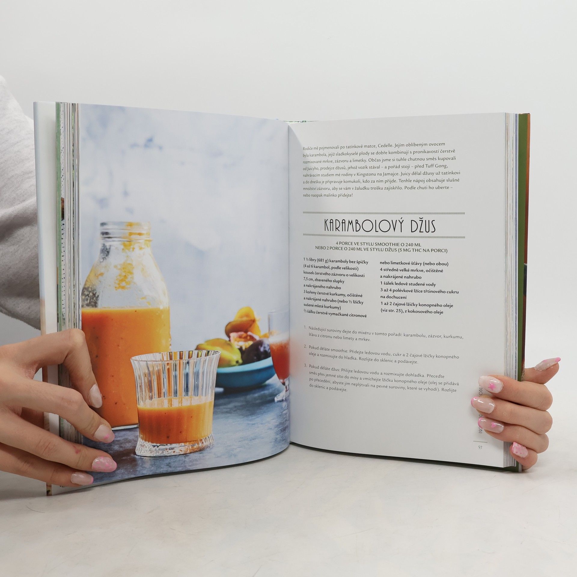 Název a podtitul říká o této knize téměř vše. Najdeme v ní recepty, které se tradují v nejslavnější „reggea“ rodině – u Marleových. Jsou rozděleny do přehledných kapitol (maso, dezerty apod.) a bohatě doplněny fotografiemi. V téhle knize najdete nejenom recepty, ale i metody, délku přípravy a rady, jak konopí vařit a zužitkovávat v plném rozsahu – v čajích, tonicích, polévkách nebo koupelích. Cedela Marlyová, která se narodila 23. srpna 1967 v Kingstonu na Jamajce, je zpěvačka, tanečnice, módní návrhářka a herečka. Je prvorozenou dcerou zpěváka Boba Marleyho a jeho manželky Rity. Do roku 2002 měla spolu se sourozenci kapelu Melody Makers. Jejich vize byla podobná otcovu přání – spojovat lidi pomocí hudby reggae. Dnes žije v Miami na Floridě v USA.