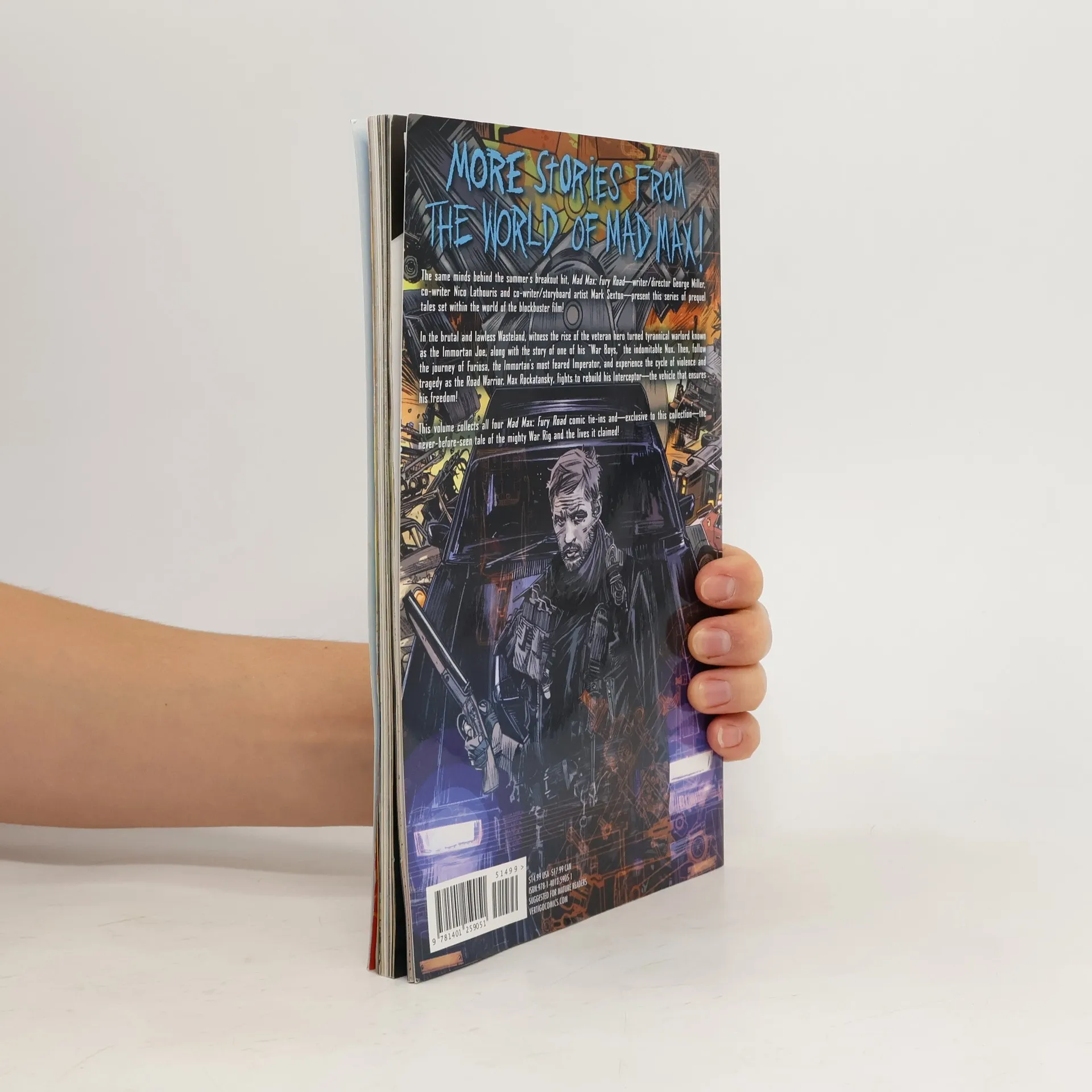 George Miller, Nico Lathouris, and Mark Sexton scribe four prelude stories that follow leading characters Nux, Immortan Joe, and Furiosa, and a two-part story about Mad Max.