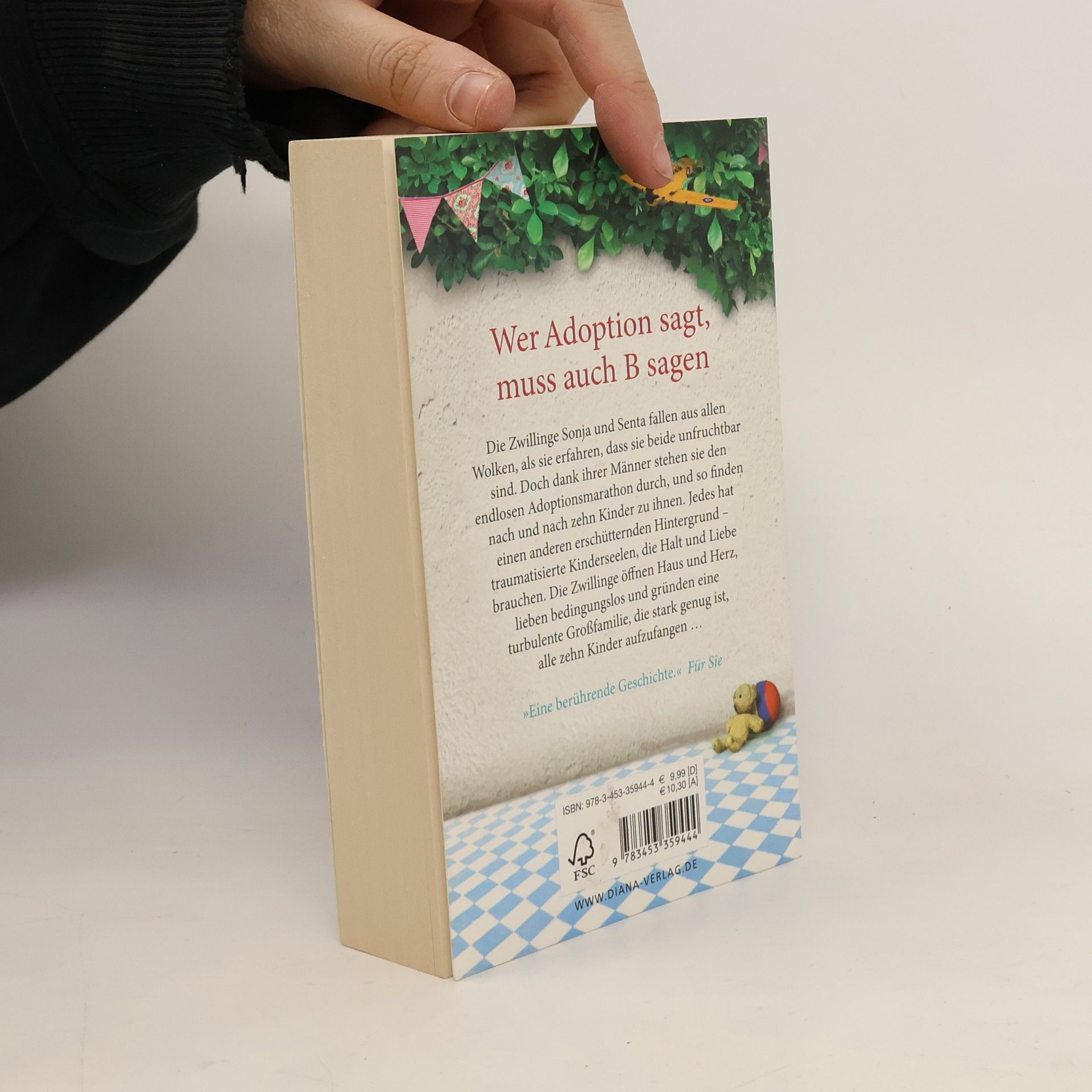 Wer Adoption sagt, muss auch B sagen Die Zwillinge Sonja und Senta fallen aus allen Wolken, als sie erfahren, dass sie beide unfruchtbar sind. Doch dank ihrer Männer stehen sie den endlosen Adoptionsmarathon durch, und so finden nach und nach zehn Kinder zu ihnen. Jedes hat einen anderen erschütternden Hintergrund – traumatisierte Kinderseelen, die Halt und Liebe brauchen. Die Zwillinge öffnen Haus und Herz, lieben bedingungslos und gründen eine turbulente Großfamilie, die stark genug ist, alle zehn Kinder aufzufangen …Eine berührende Geschichte voller Mut und Konsequenz und dem unerschütterlichen Glauben an die Kraft der Familie
