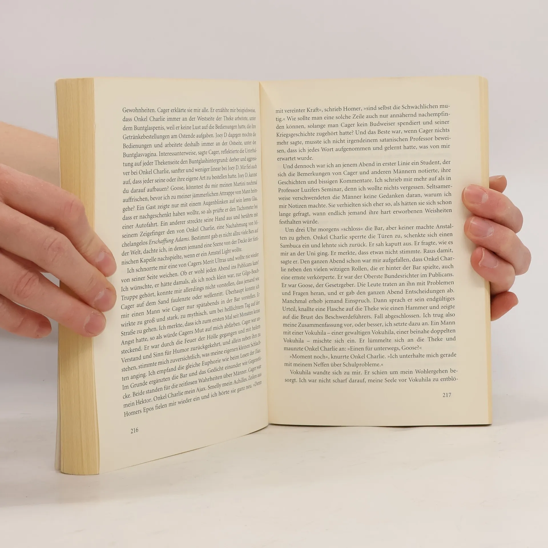 Eine Bar ist vielleicht nicht der beste Ort für ein Kind, aber bei weitem nicht der schlechteste. Vor allem das »Dickens« nicht, mit seinen warmherzigen und skurrilen Figuren: Smelly, der Koch, Bob der Cop mit seiner dunklen Vergangenheit oder Cager, der Vietnam-Veteran. Für den kleinen JR, der alleine mit seiner Mutter wohnt, sie alle sind bessere Väter als seiner es jemals war. JR wird erwachsen, und erfüllt sich seinen Traum: er geht nach Yale. Die Bar wird JR sein Leben lang begleiten. Dort hört er zum ersten Mal Sinatra, sieht Baseballspiele im Fernsehen, und trinkt sein erstes Bier. Und bekommt all das, was er braucht: Mut, Zuversicht und die Gewissheit, dass es nicht immer nur die Guten oder die Bösen gibt, dass Bücher Berge versetzen können und dass man an gebrochenem Herzen nicht stirbt.Ein abwechselnd herzzerreißender und urkomischer Roman über tapfere Kinder, mitfühlende Männer und starke Mütter. Und darüber, dass Träume auch wahr werden können - wenn man für sie kämpft.