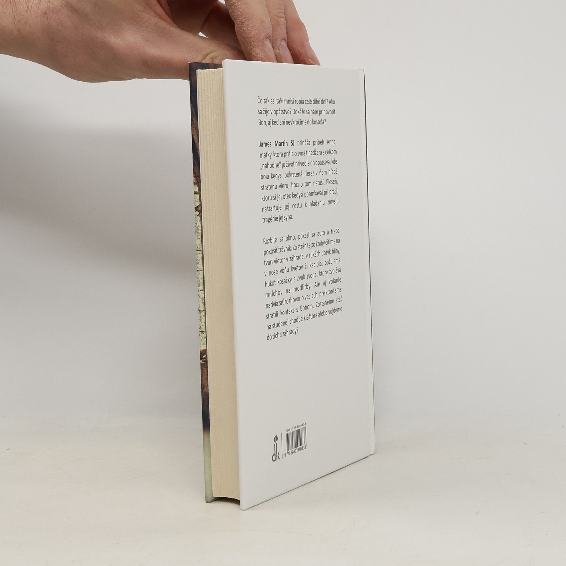 Čo tak asi takí mnísi robia celé dlhé dni? Ako sa žije v opátstve? Dokáže sa nám prihovoriť Boh, aj keď ani nevkročíme do kostola? James Martin SJ prináša príbeh Anne, matky, ktorá prišla o syna tínedžera a celkom „náhodne“ ju život privedie do opátstva, kde bola kedysi pokrstená. Teraz v ňom hľadá stratenú vieru, hoci o tom netuší. Pieseň, ktorú si jej otec kedysi pohmkával pri práci, naštartuje jej cestu k hľadaniu zmyslu tragédie jej syna. Rozbije sa okno, pokazí sa auto a treba pokosiť trávnik. Zo strán tejto knihy cítime na tvári vietor v záhrade, v rukách dotyk hliny, v nose vôňu kvetov či kadidla, počujeme hukot kosačky a zvuk zvonu, ktorý zvoláva mníchov na modlitby. Ale aj volanie nadviazať rozhovor o veciach, pre ktoré sme stratili kontakt s Bohom. Zostaneme stáť na studenej chodbe kláštora, alebo vojdeme do ticha záhrady?