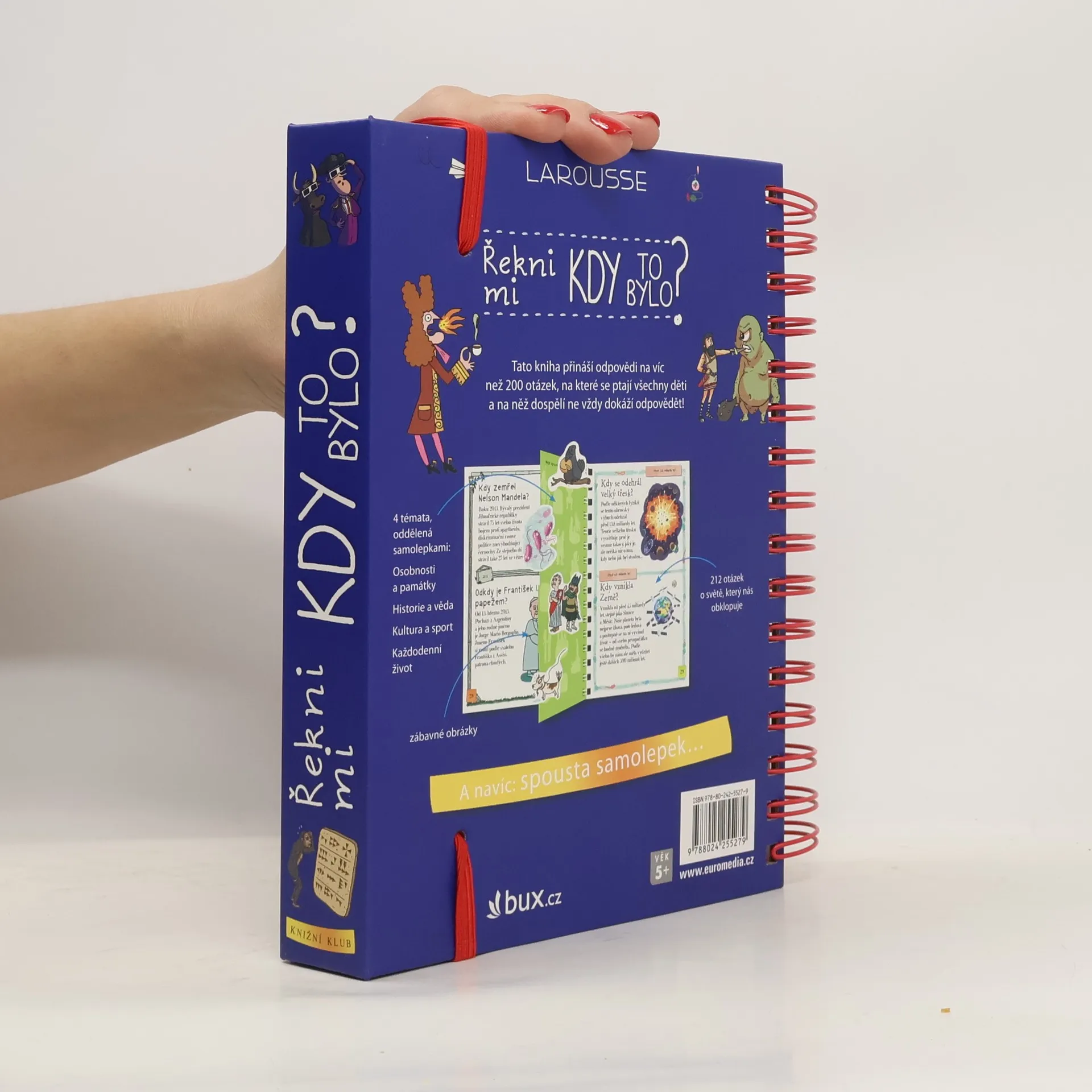Další z oblíbených encyklopedií pro zvídavé děti z edice „Řekni mi“ se tentokrát věnuje dějinám lidstva a celé planety Země. Odpovídá na 216 přemýšlivých otázek rozdělených do kapitol Osobnosti a pamětihodnosti, Historie a věda, Kultura a sport či Každodenní život. Knížka s praktickou spirálovou vazbou jako obvykle nabízí půvabné a vtipné ilustrace a nechybí ani tři listy se samolepkami.