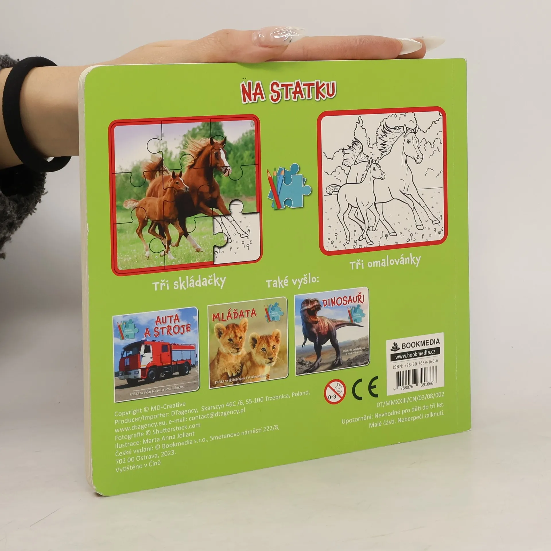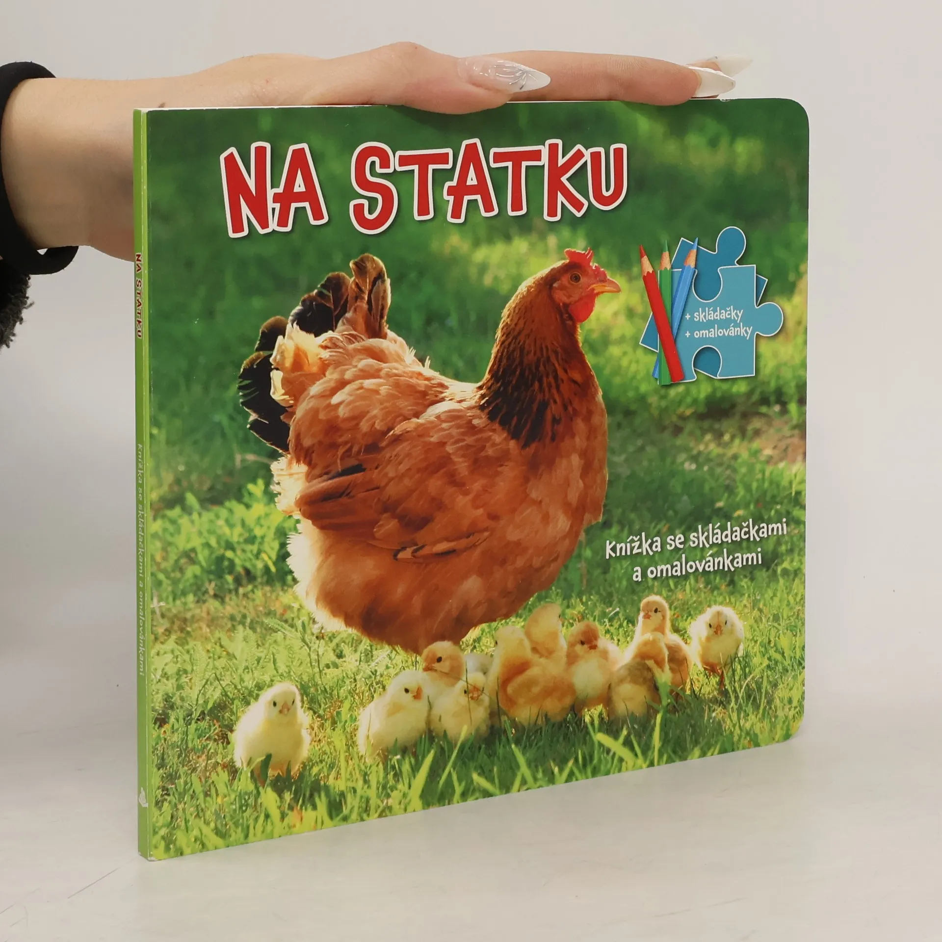 Leporelo se spoustou barevných obrázků, třemi stránkami k vybarvování a skládání puzzle. Kniha je určena pro děti od tří let.