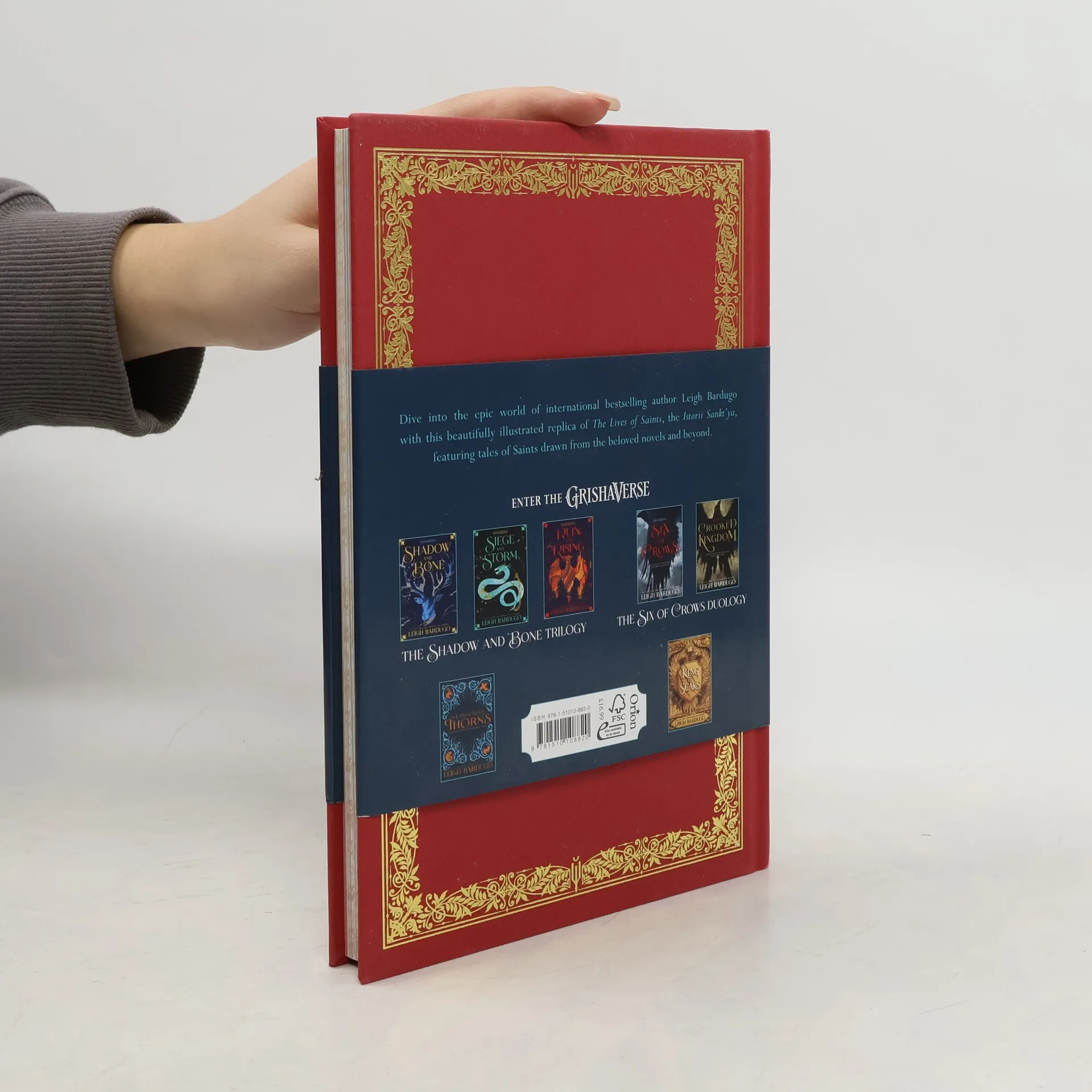Dive into the epic world of author Leigh Bardugo with this replica of The Lives of Saints, the Istorii Sankt'ya, featuring tales of saints drawn from the beloved novels and beyond. Out of the pages of the Shadow and Bone trilogy, from the hands of Alina Starkov to yours. These tales include miracles and martyrdoms from familiar saints like Sankta Lizabeta of the Roses and Sankt Ilya in Chains, to the strange and obscure stories of Sankta Ursula, Sankta Maradi, and the Starless Saint