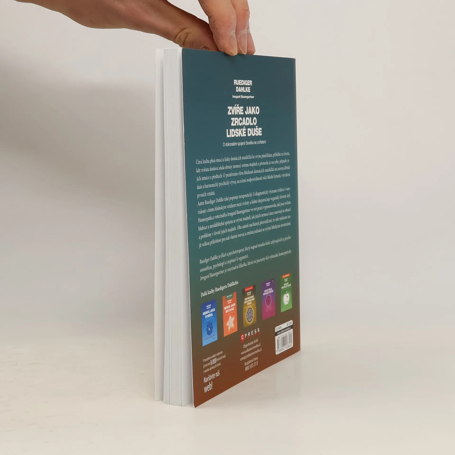 Čtivá kniha plná emocí a lásky domácích mazlíčků ke svým páníčkům, příběhů ze života, kdy zvířata doslova sňala obrazy nemoci svému majiteli a přenesla je na sebe, případy jejich intuice a předtuch. O pozitivním vlivu blízkosti domácích mazlíčků na rozvoj dětské duše a jeho harmonický psychický vývoj, na učení zodpovědnosti vůči blízké bytosti, vytváření prvních vztahů. Autor Ruediger Dahlke také popisuje terapeutický či diagnostický význam zvířat a v souvislosti s tímto hlubokým vztahem mezi zvířaty a lidmi doporučuje veganský životní styl. Homeopatka a veterinářka Irmgard Baumgartner ve své praxi vypozorovala, jak jsou zvířata hluboce a neoddělitelně spojena se svými majiteli, jak jejich nemoci úzce souvisejí se situací a problémy v životě jejich majitele. Oba autoři nacházejí přesvědčení, že zde můžeme najít velkou příležitost pro náš vlastní rozvoj a změnu jednání se svými blízkými stvořeními. Ruediger Dahlke je lékař a psychoterapeut, který napsal mnoho knih zabývající se psychosomatikou, psychologiíí a inspirací k veganství. Irmgard Baumgartner je veterinární lékařka, která své pacienty léčí výhradně homeopaticky.