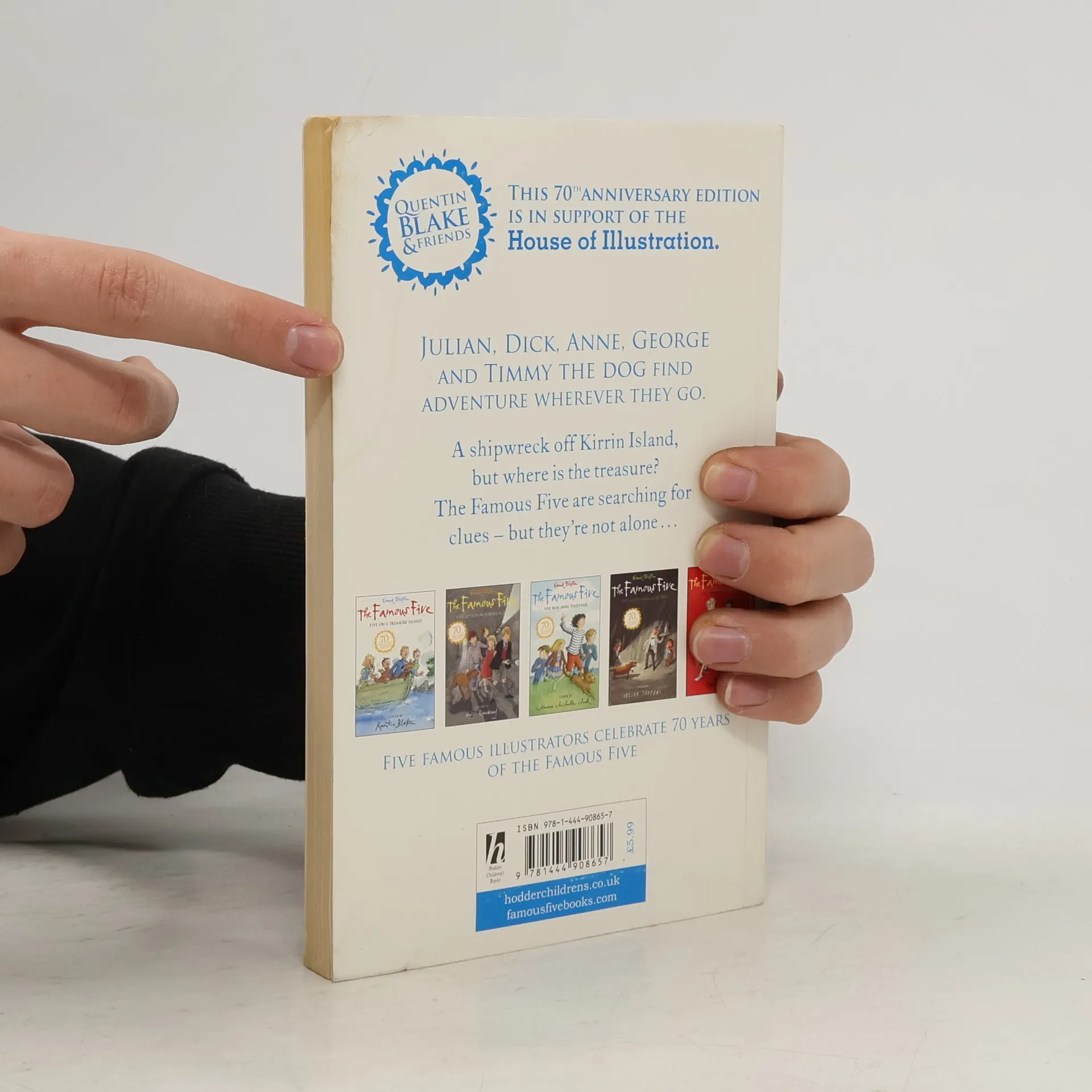Celebrate 80 years of the Famous Five with this fabulous edition of the first book featuring a cover by Sir Quentin Blake. Join the adventure! Julian, Dick, Anne, George and Timmy the dog find excitement and adventure wherever they go in Enid Blyton's most popular series - a landmark of children's fiction, loved around the world for several generations. In their first adventure, the Famous Five find a shipwreck off Kirrin Island. But where is the treasure? The Famous Five are on the trail, looking for clues, but they're not alone. Someone else has got the same idea! Time is running out for the Famous Five - who will follow the clues and get to the treasure first? Read it and discover out why readers from Lee Child to Gary Barlow, from Michael Morpurgo to Lorraine Kelly, love this classic adventure story.