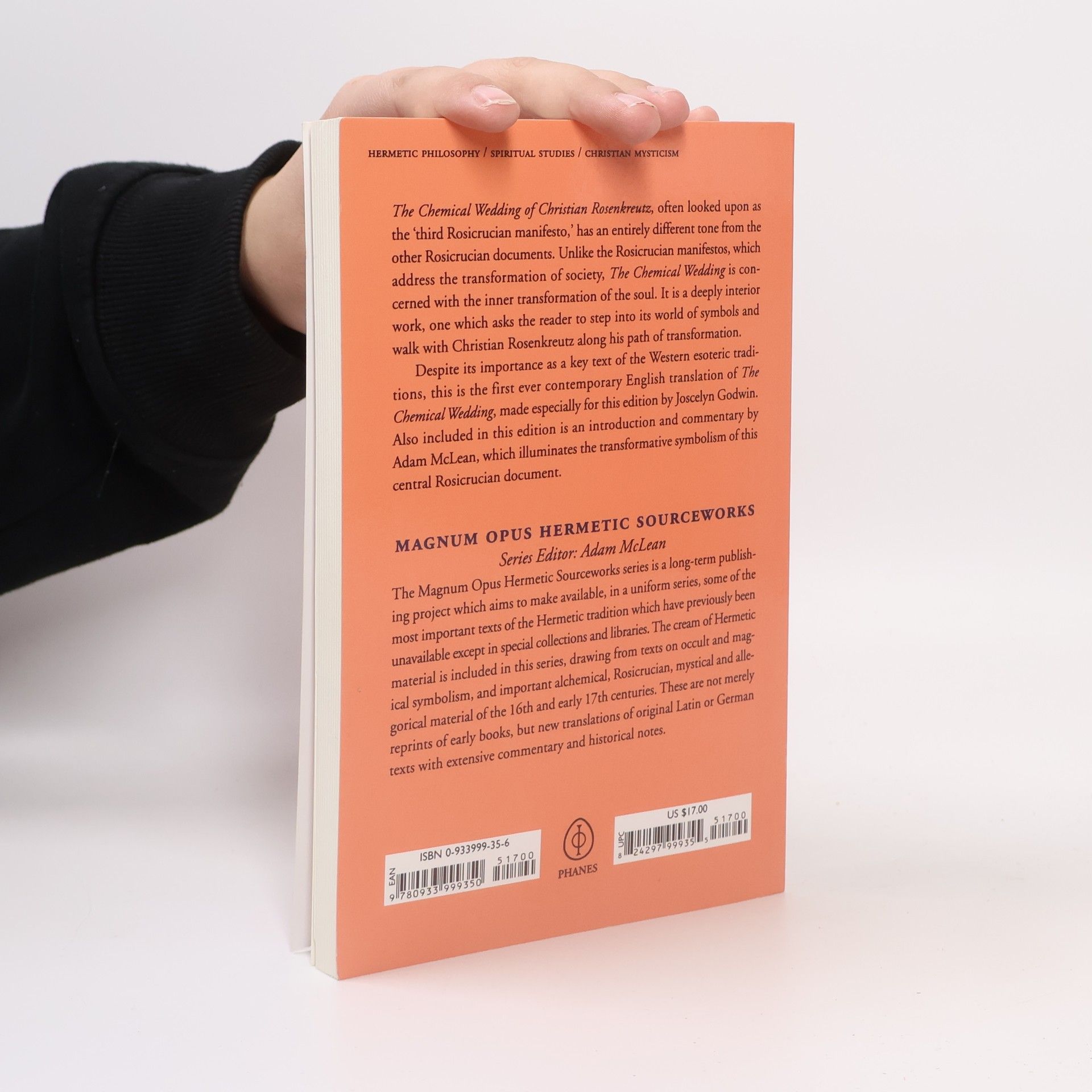 The Chemical Wedding of Christian Rosenkreutz, often looked upon as the third Rosicrucian manifesto, has an entirely different tone from the other Rosicrucian documents. Unlike the Rosicrucian manifestoes, which address the transformation of society, The Chemical Wedding is concerned with the inner transformation of the soul. It is a deeply interior work, one which asks the reader to step into its world of symbols and walk with Christian Rosenkreutz along his path of transformation. Despite its importance as a key text of the Western esoteric traditions, this is the first ever contemporary English translation of The Chemical Wedding, made especially for this edition by Joscelyn Godwin. Also included in this edition is an introduction and commentary by Adam McLean, which illuminates the transformative symbolism.