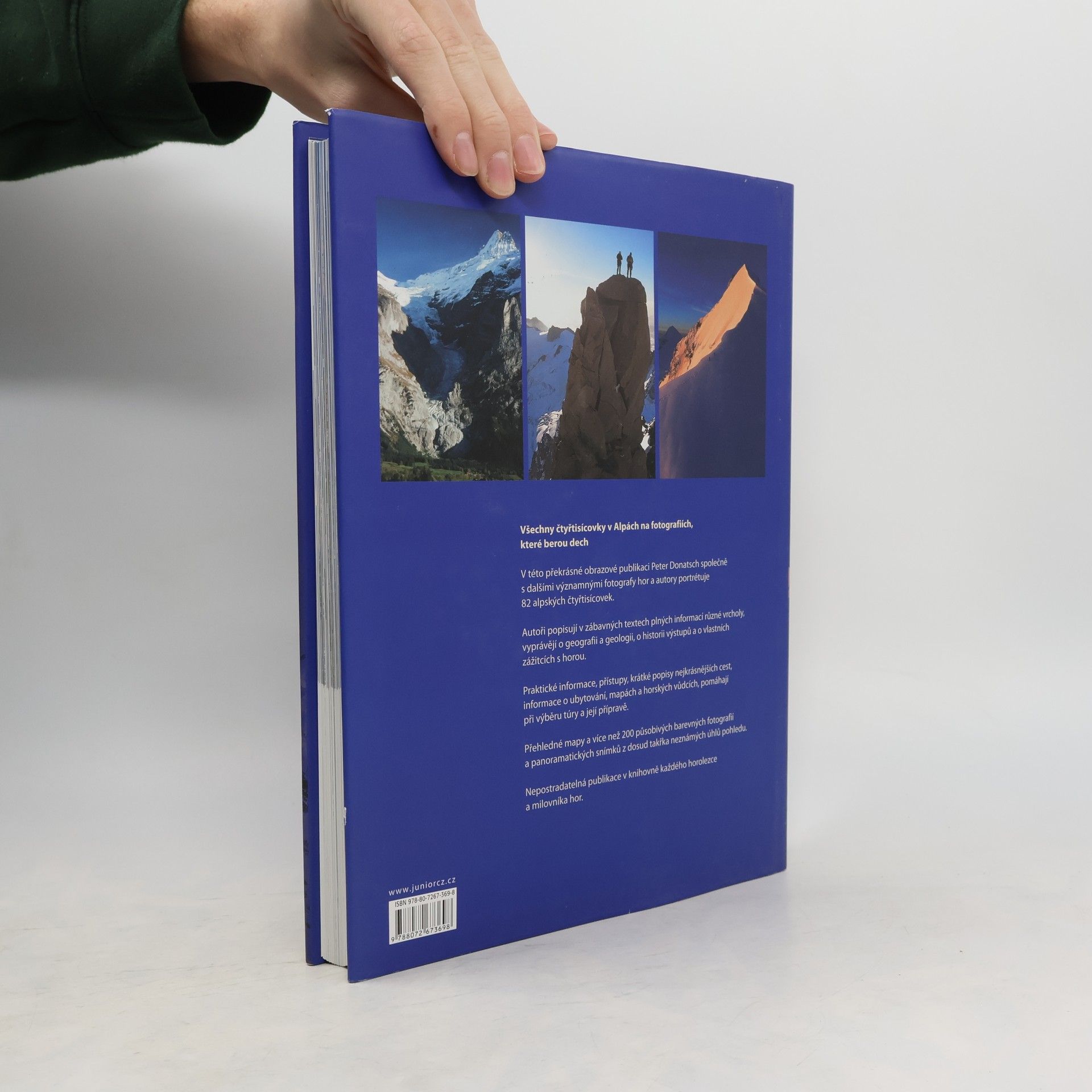 V této překrásné obrazové publikaci Peter Donatsch společně s dalšími významnými fotografy hor a autory portrétuje 82 alpských čtyřtisícovek. Autoři knihy Všechny alpské čtyřtisícovky popisují v zábavných textech plných informací různé vrcholy, vyprávějí o geografii a geologii, o historii výstupů a o vlastních zážitcích s horou. Nalezente zde informace, přístupy, krátké popisy nejkrásnějších cest, informace o ubytování, mapách a horských vůdcích, přehledné mapy a více než 200 působivých barevných fotografií a panoramatických snímků z dosud takřka neznámýc úhlů pohledu.