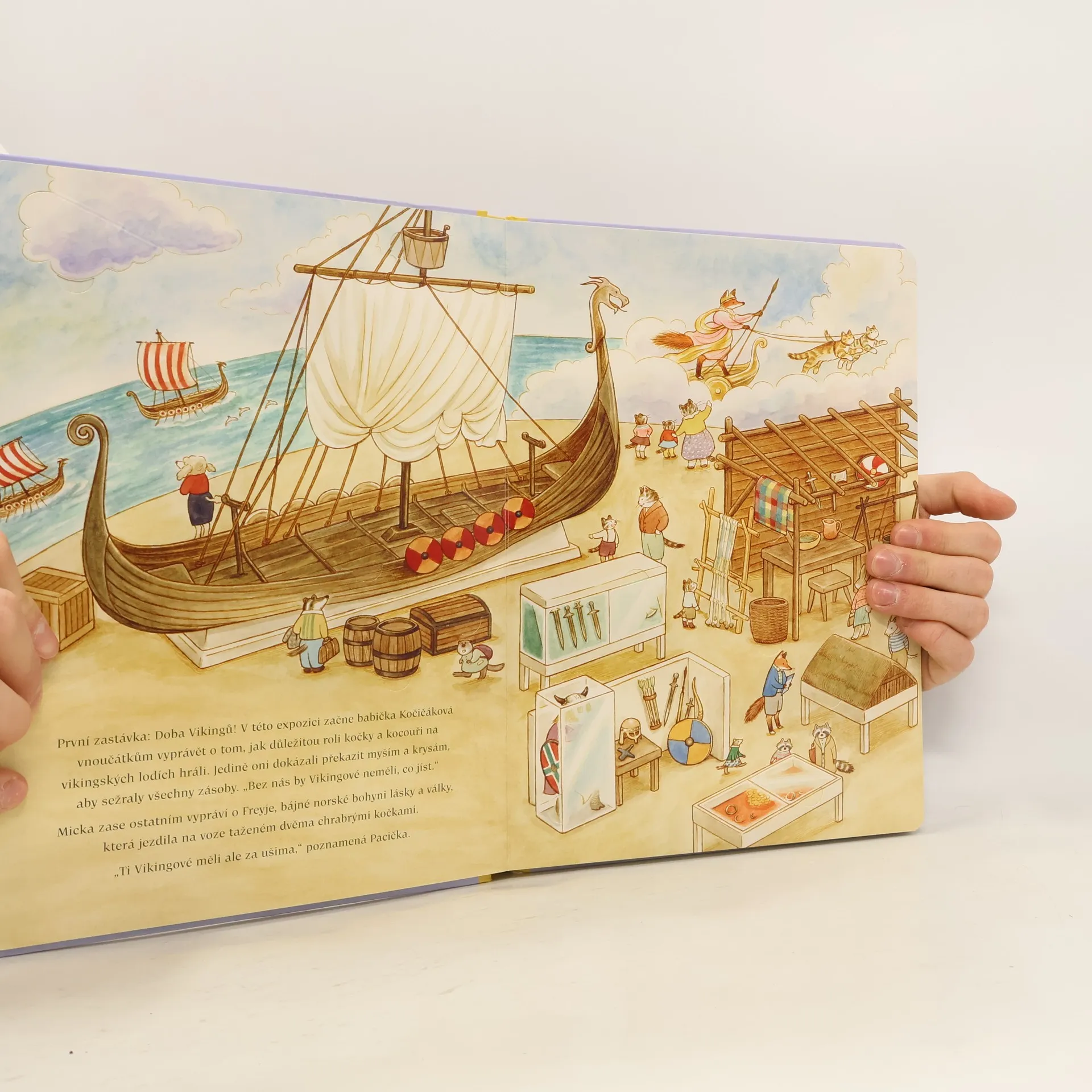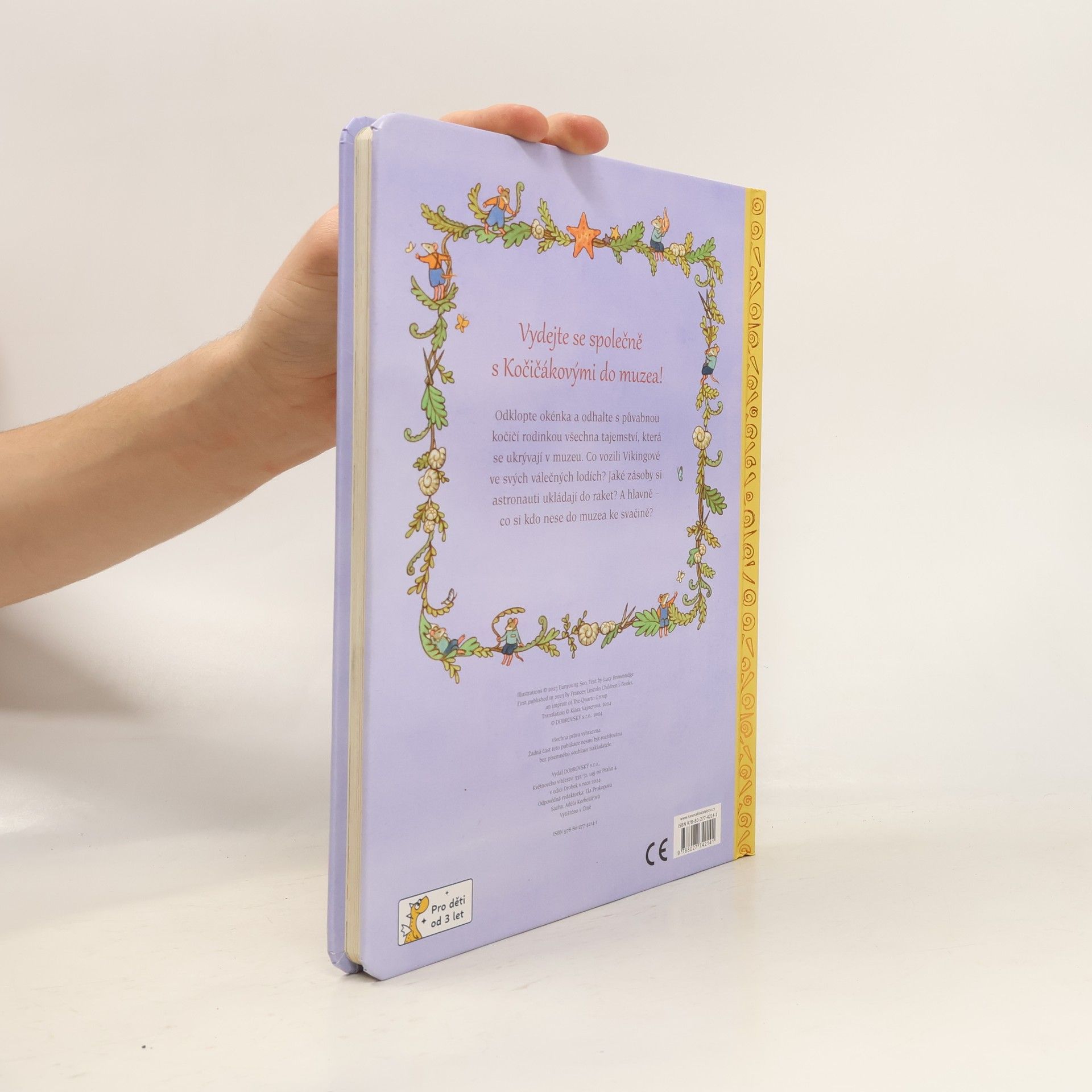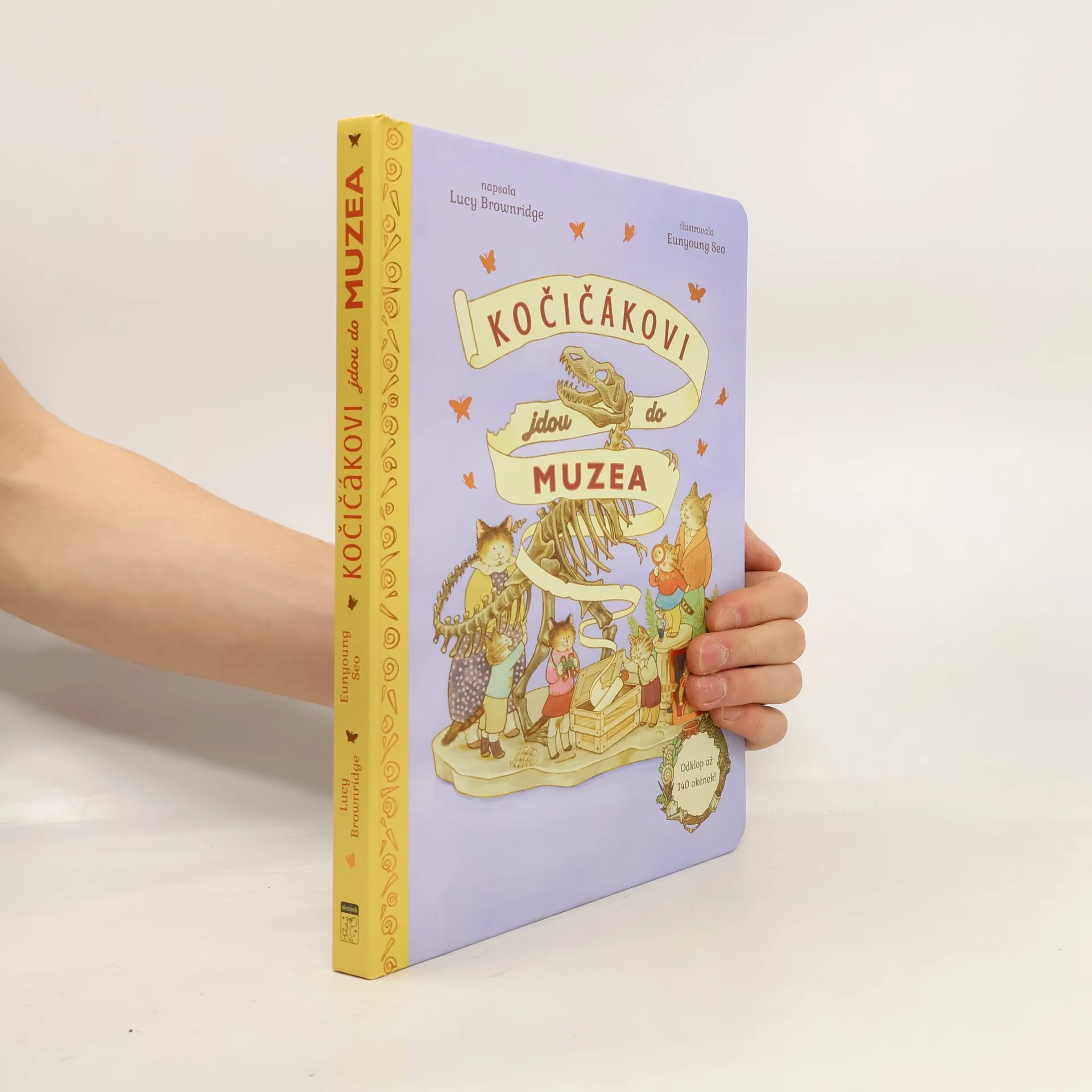 Okouzlující dětská knížka s překrásnými ilustracemi plná skrytých okének, která děti mohou odklápět a objevovat tajné obrázky. Na dvaceti čtyřech stranách najdete přes 140 okének. Vydejte se společně s Kočičákovými do muzea! Odklopte okénka a odhalte s půvabnou kočičí rodinkou všechna tajemství, která se ukrývají v muzeu. Co vozili Vikingové ve svých válečných lodích? Jaké zásoby si astronauti ukládají do raket? A hlavně - co si kdo nese do muzea ke svačině? Vhodné pro děti od 2 let.