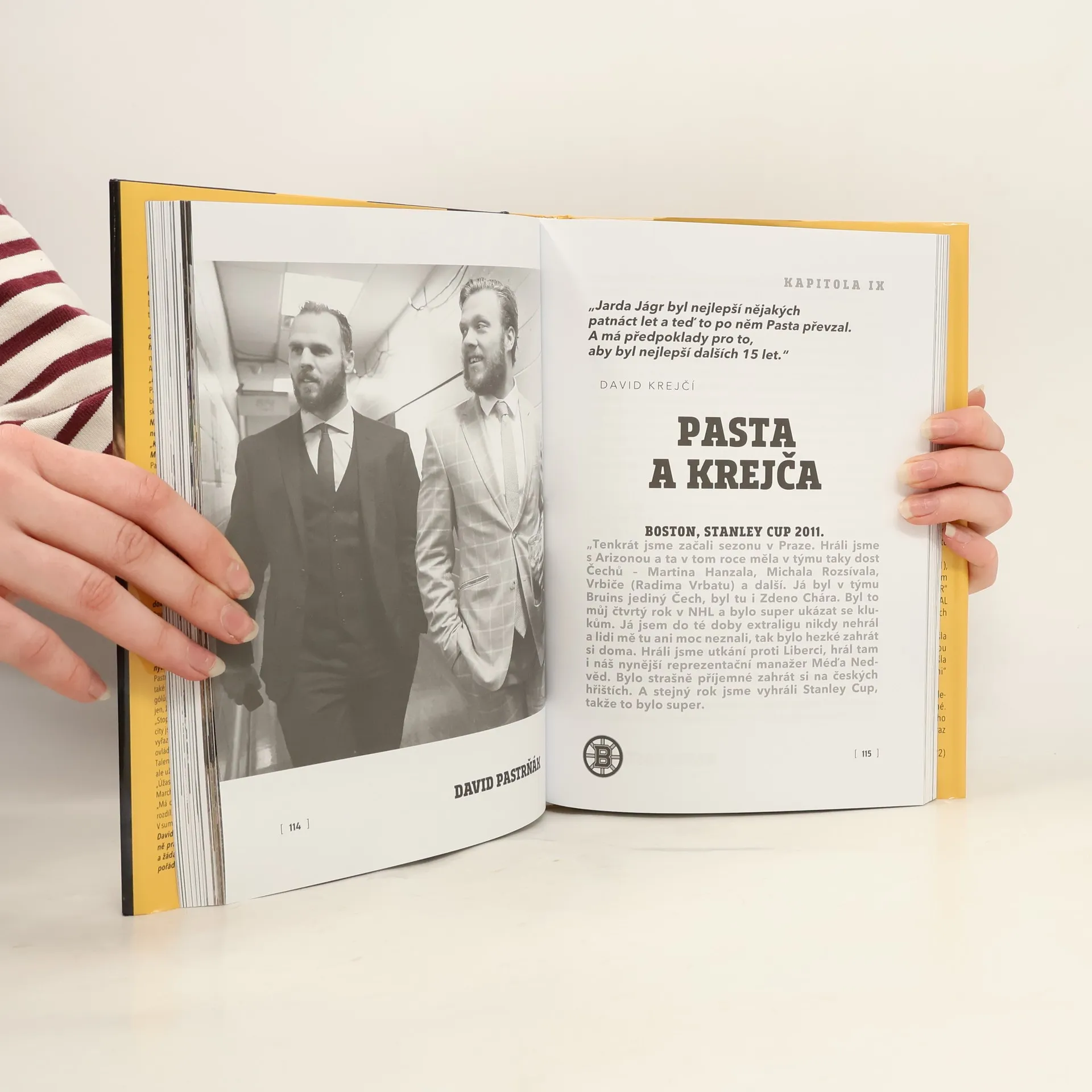 „Mám dva cíle. Vyhrát mistrovství světa a Stanley Cup.“ Čtete příběh o malém, a dnes velikém, hokejovém Davidovi, přezdívaném „Pasta“, české i globální star. David Krejčí, uznávaný hokejový mozek, nejlépe objasňuje, proč pravé křídlo Bostonu Bruins a českého reprezentanta vidí tak vysoko. „Pasta nemá strop, je schopný zvládnout úplně všechno. Není jen čistokrevným střelcem, má dokonale neviditelné nahrávky. Když vnímáte hokej v televizi, vše vypadá jednoduše, vidíte ho v akci naživo a jen kroutíte hlavou, co dokáže,“ vysloví jeden z nejlepších centrů světa, ale rovněž obdivovatel umění Messiho a Ronalda. Ví tedy nepochybně, co říká. A jaký má David, rodák z Havířova, na takové hokejové umění recept? „Hokej je zábava,“ vysloví ledabyle, když sklízí obdiv fanoušků, žurnalistů. Se stejnou lehkostí překonává gólmany. Pasta slova svého parťáka více než naplnil v uplynulé sezoně, ve které se stal po Connoru McDavidovi (153 kanadských bodů – 64 gólů, 89 asistencí) s 61 zásahy druhým nejlepším střelcem základní části NHL a v kanadském bodování ligy skončil třetí (113 bodů, 61+52) právě za tímto novým velikánem a jeho spoluhráčem z Edmontonu Leonem Draisaitlem...
