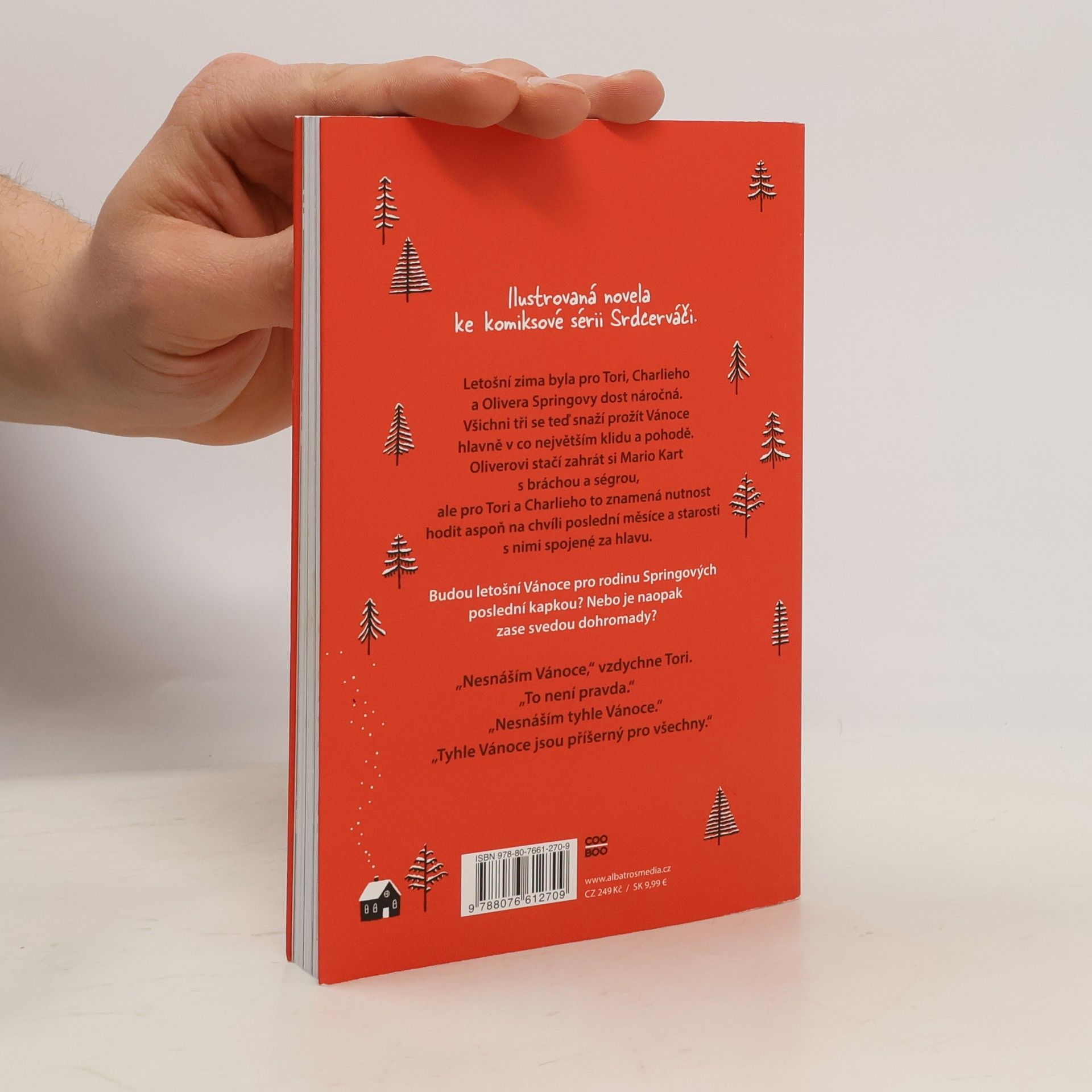Ilustrovaná novela ke komiksové sérii Srdcerváči. Letošní zima byla pro Tori, Charlieho a Olivera Springovy dost náročná. Všichni tři se teď snaží prožít Vánoce hlavně v co největším klidu a pohodě. Oliverovi stačí zahrát si Mario Kart s bráchou a ségrou, ale pro Tori a Charlieho to znamená nutnost hodit aspoň na chvíli poslední měsíce a starosti s nimi spojené za hlavu. Budou letošní Vánoce pro rodinu Springových poslední kapkou? Nebo je naopak zase svedou dohromady?