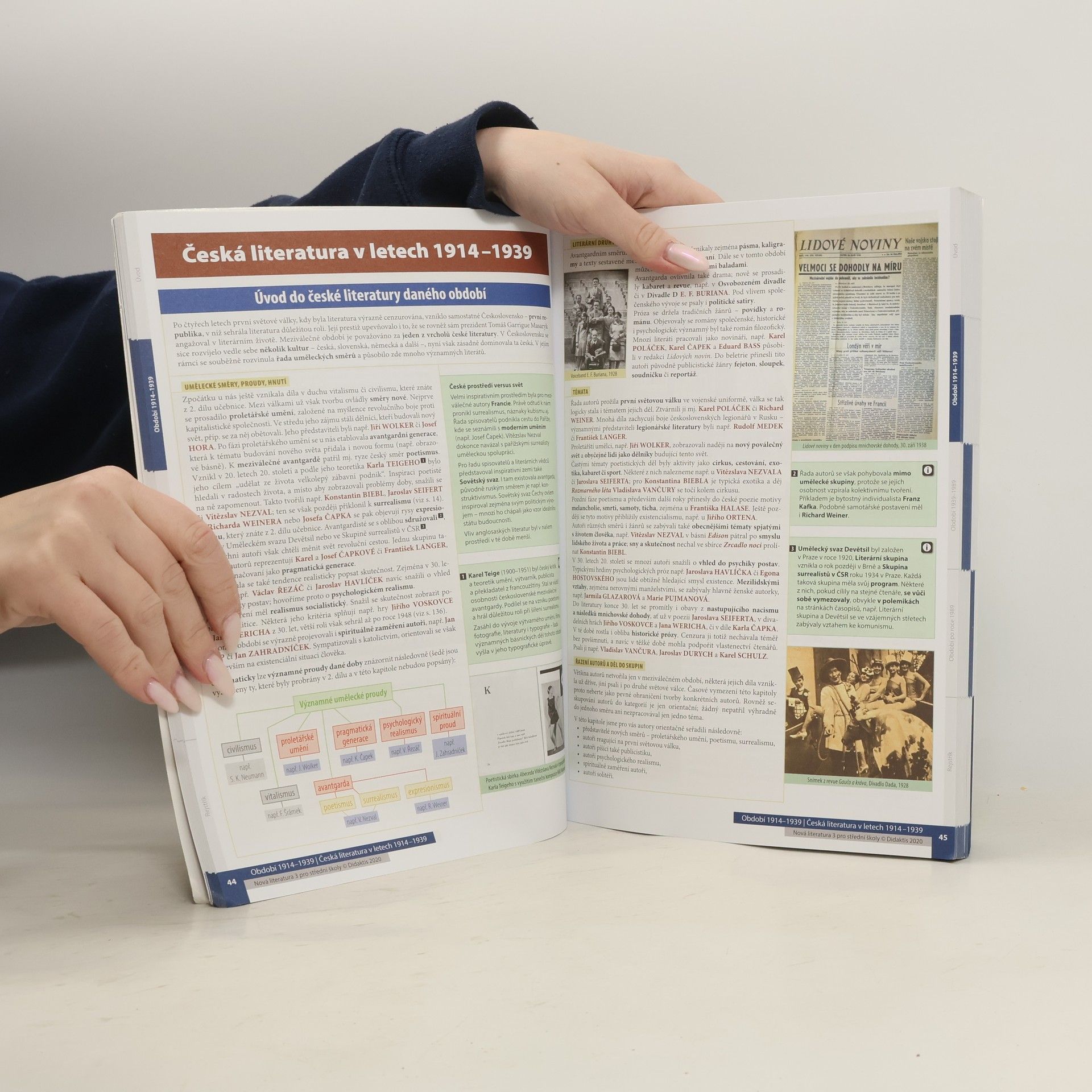 Učebnice obsahuje výklad k literatuře od roku 1914 po současnost. V chronologickém sledu seznamuje žáky s vývojem světové a české literatury, a to ve třech celcích (Období 1914–1939, Období 1939–1989 a Období po roce 1989), z nichž každý je tvořen dvěma či třemi kapitolami.