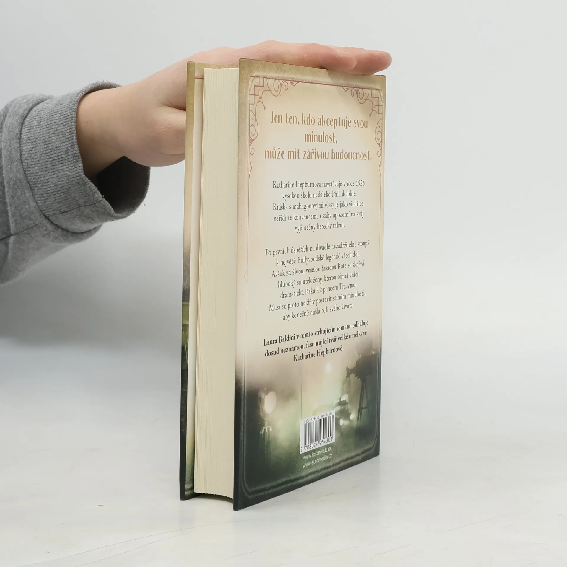 Strhující román odhaluje dosud neznámou, fascinující tvář velké umělkyně. Katharine Hepburnová po prvních úspěších na divadle nezadržitelně stoupá k největší hollyvoodské legendě všech dob. Za živou, veselou fasádou Kate se však skrývá hluboký smutek ženy, kterou téměř zničí dramatická láska k Spenceru Tracymu. Musí se proto nejdřív postavit stínům minulosti, aby konečně našla roli svého života.