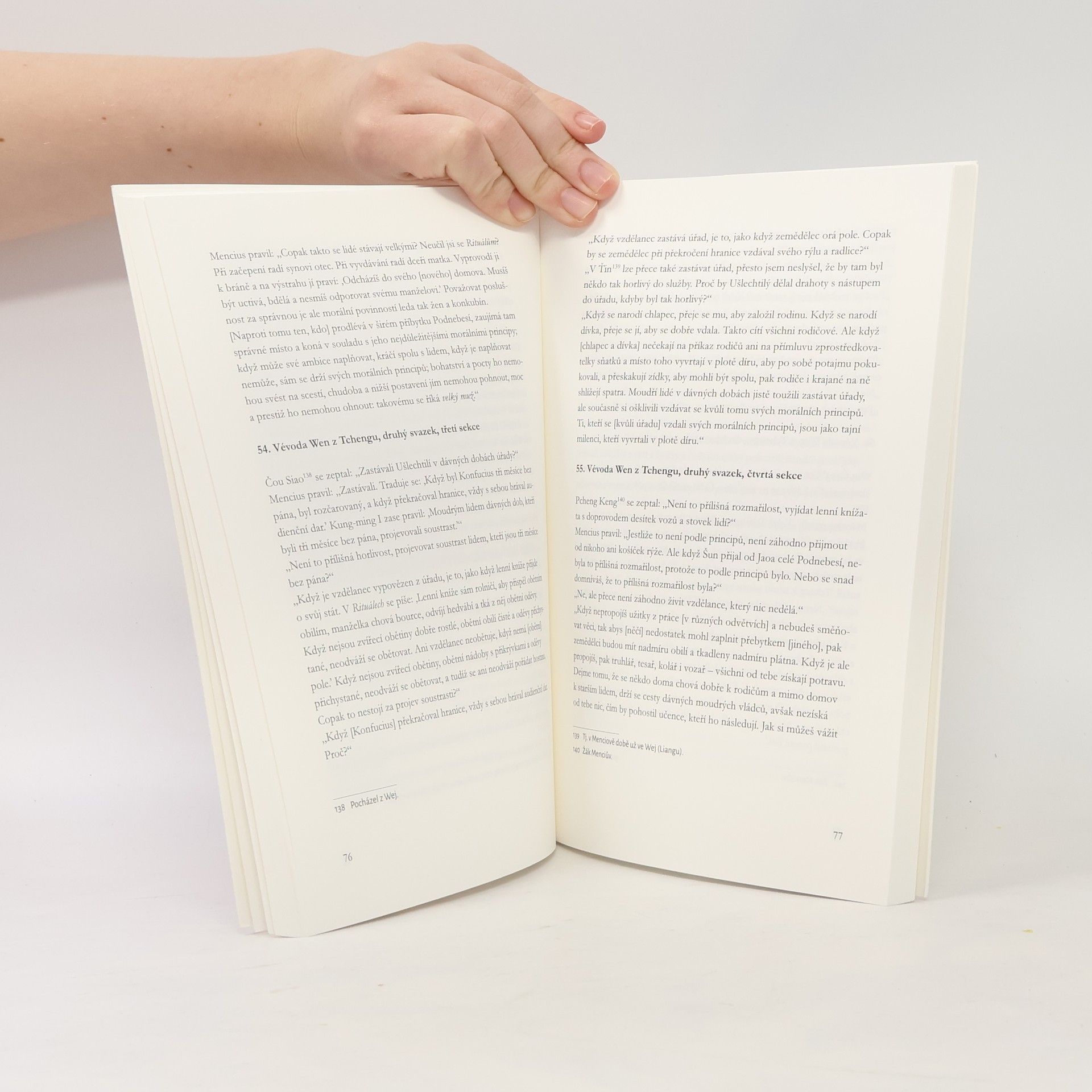 První úplný český překlad jednoho ze stěžejních konfuciánských textů z klasické čínštiny. Kniha Mencius byla společně s Konfuciovými Hovory, Velkým učením a Doktrínou středu zařazena mezi tzv. Čtyři knihy, jejichž znalost byla po dlouhá staletí ověřována u čínských úřednických zkoušek. Obsahuje dialogy Mistra Menga neboli Mencia (372–289 př. n. l.) s různými postavami, včetně jeho žáků a panovníků z období Válčících států, které se tento „putující filosof“ snažil přesvědčit k tomu, aby nastoupili cestu pravého krále v souladu s konfuciánskými principy lidskosti a správnosti. Mencius se vyjadřuje k rozmanitým tématům, od spravedlivé vlády a náležité státosprávy přes lidskou přirozenost až po konkurenční nekonfuciánská učení, jež se snaží pečlivě vystavěnými argumenty vyvracet. Překlad doprovází stručný úvod, bibliografie a poznámkový aparát, který usnadňuje orientaci v textu i čtenářům-nesinologům.