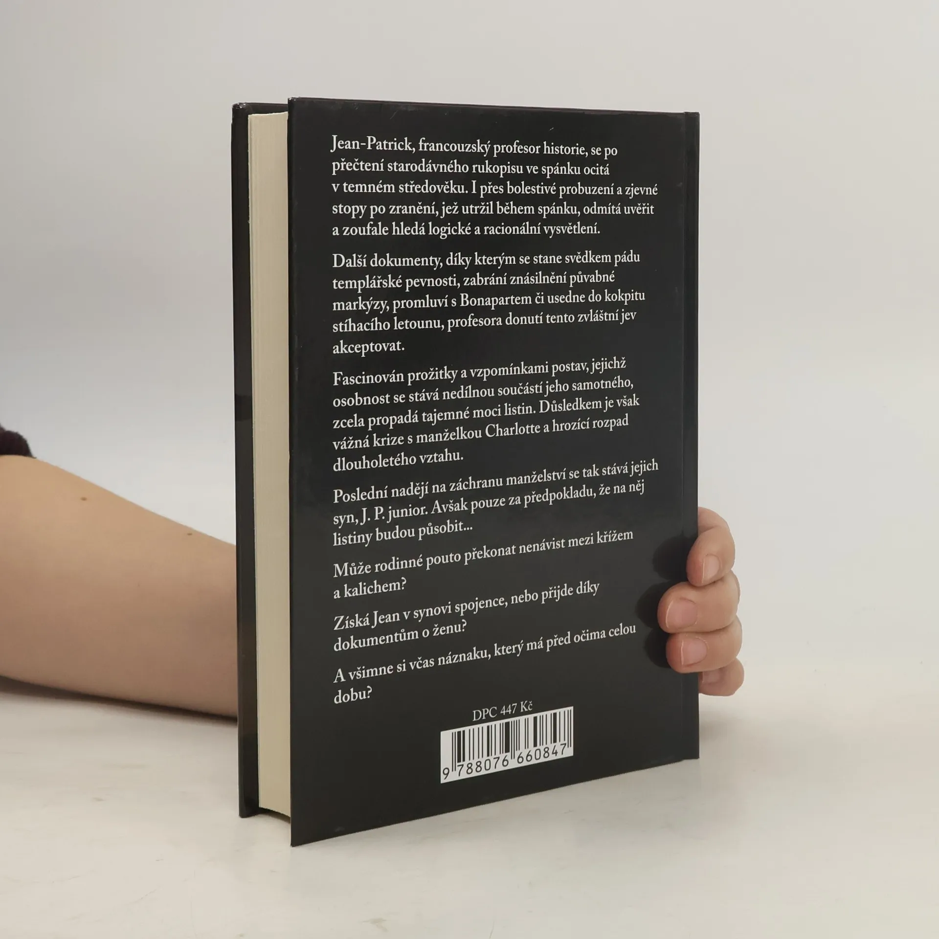 Jean-Patrick, francouzský profesor historie, se po přečtení starodávného rukopisu ve spánku ocitá v temném středověku. I přes bolestivé probuzení a zjevné stopy po zranění, jež utržil během spánku, odmítá uvěřit a zoufale hledá logické a racionální vysvětlení. Další dokumenty, díky kterým se stane svědkem pádu templářské pevnosti, zabrání znásilnění půvabné markýzy, promluví s Bonapartem či usedne do kokpitu stíhacího letounu, profesora donutí tento zvláštní jev akceptovat. Fascinován prožitky a vzpomínkami postav, jejichž osobnost se stává nedílnou součástí jeho samotného, zcela propadá tajemné moci listin. Důsledkem je však vážná krize s manželkou Charlotte a hrozící rozpad dlouholetého vztahu. Poslední nadějí na záchranu manželství se tak stává jejich syn, J. P. junior. Avšak pouze za předpokladu, že na něj listiny budou působit... Může rodinné pouto překonat nenávist mezi křížem a kalichem? Získá Jean v synovi spojence, nebo přijde díky dokumentům o ženu? A všimne si včas náznaku, který má před očima celou dobu?
