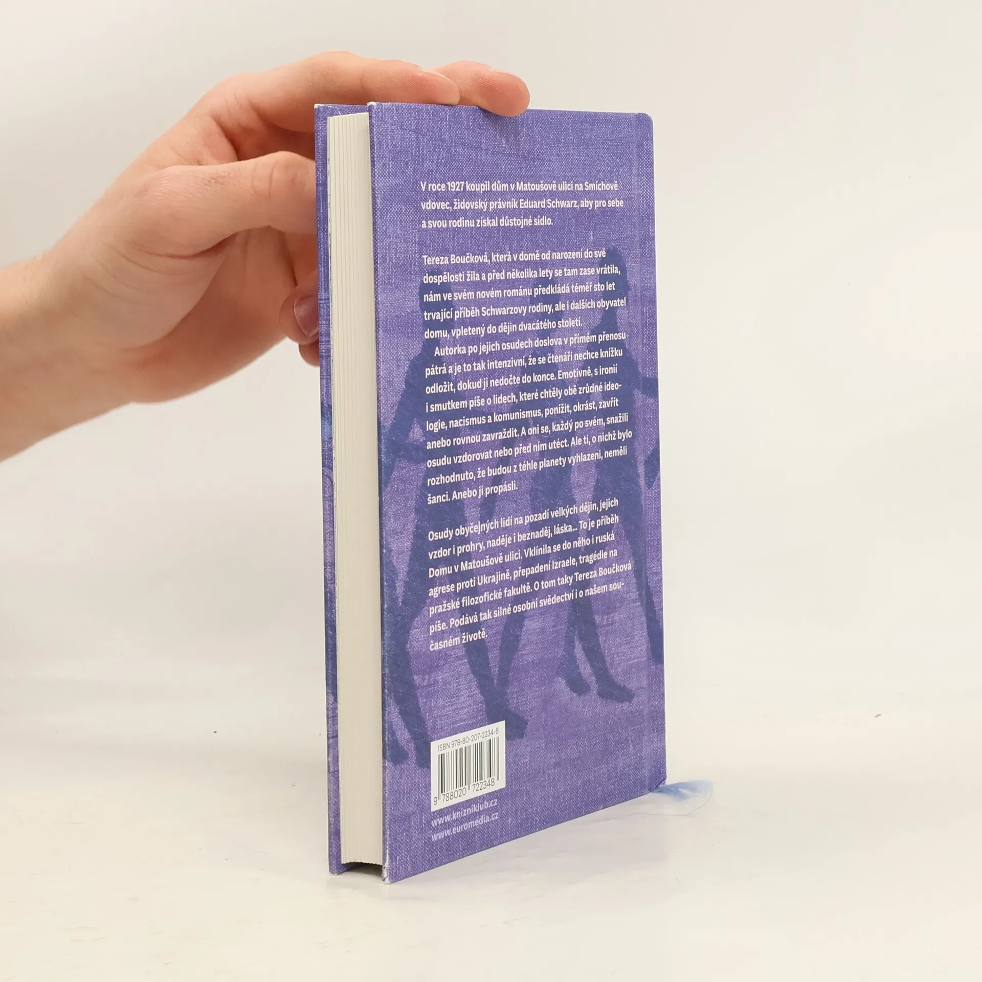 V roce 1927 koupil dům v Matoušově ulici na Smíchově vdovec, židovský právník Eduard Schwarz, aby pro sebe a svou rodinu získal důstojné sídlo. Měl štěstí, že zemřel dřív než začala druhá světová válka. Tereza Boučková, která v domě od narození do své dospělosti žila a před několika lety se tam zase vrátila, nám ve svém románu předkládá téměř sto let trvající příběh Schwarzových potomků, ale i dalších obyvatel domu, vpletený do dějin dvacátého století. Autorka po jejich osudech doslova v přímém přenosu pátrá a je to tak intenzivní, že se čtenáři nechce knížku odložit, dokud ji nedočte do konce. Emotivně, s ironií, ale i smutkem píše o lidech, které chtěly obě zrůdné ideologie, nacismus a komunismus, ponížit, okrást, zavřít anebo zavraždit.