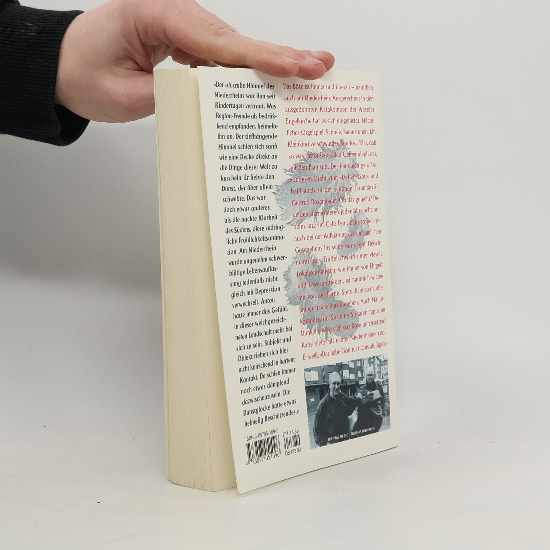 Das Böse ist immer und überall - natürlich auch am Niederrhein. Ausgerechnet in den ausgedehnten Katakomben der Weseler Engelkirche hat es sich eingenistet. Nächtliches Harmoniumspiel, Schreie, Satansrunen. Ein Säugling verschwindet. Spurlos. Klar, dass so was Pastor Rabe, den Gemeindepfarrer, auf den Plan ruft. Der hat einen ganz besonderen Draht zum "Lieben Gott" und bald auch zu der schönen Frauenärztin Gertrud Rosenbaum. Ob das gutgeht? Die beiden harmonieren jedenfalls nicht nur beim Jazz im Cafe Fehr, bald stoßen sie auch bei der Aufklärung des unheimlichen Geschehens ins selbe Horn. Ferdi Fleischmann, das Trüffelschwein unter den niederrheinischen Lokaljournalisten, wie immer von Ehrgeiz und Eros umtrieben, ist natürlich wieder mit von der Partie. Stets dicht dran, aber immer haarscharf daneben. Auch Hauptkommissarin Susanne Straaten tappt im Dunkeln. Wird sich das Böse durchsetzen? Anton Rabe bleibt als echter Niederrheiner cool. Er weiß: "Der liebe Gott tut nichts als fügen."