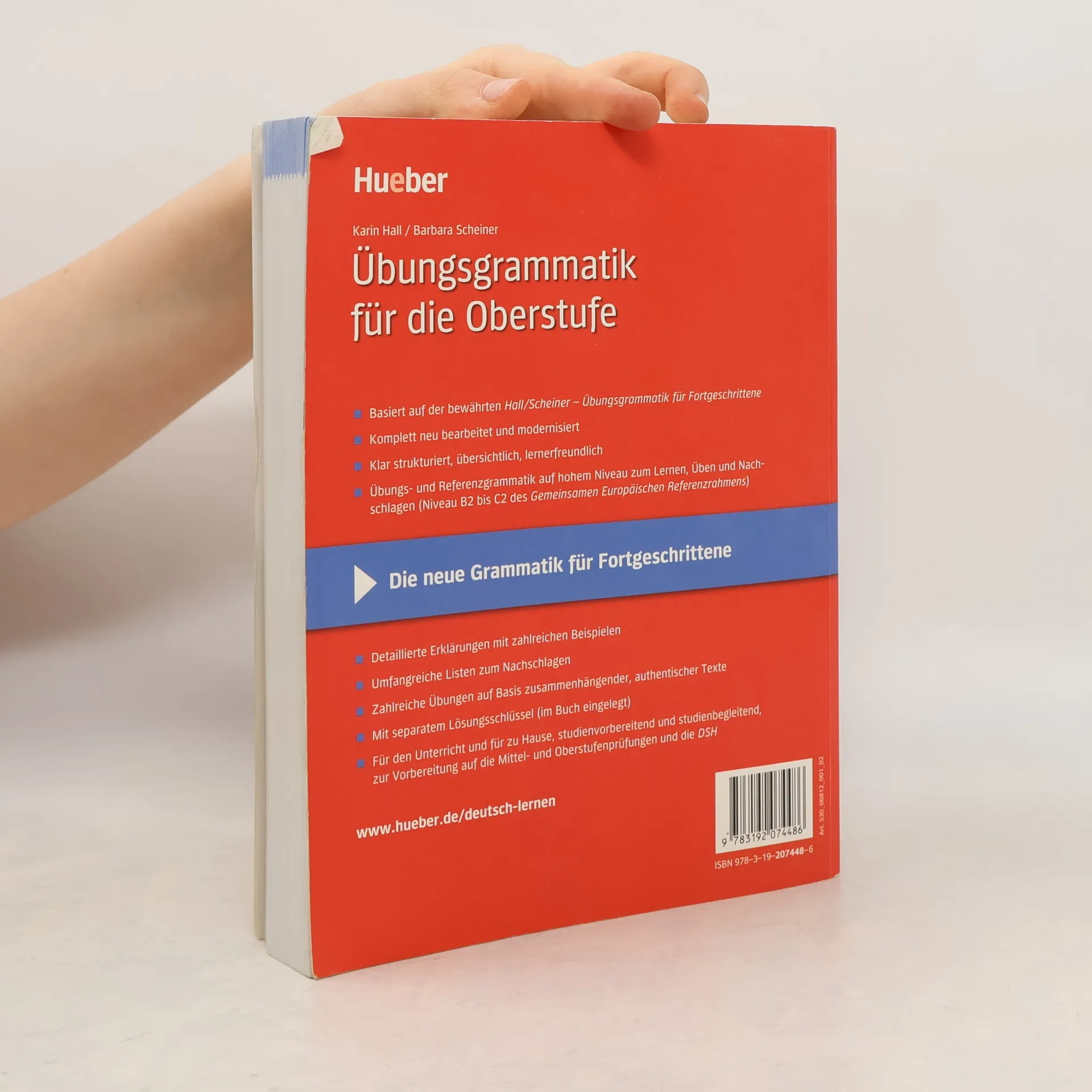 Niveau B2 bis C2 Die Übungsgrammatik für die Oberstufe (Niveau B2-C2) – eine Neubearbeitung der bewährten Übungsgrammatik für Fortgeschrittene von Hall/Scheiner – eignet sich für den Unterricht als auch für das Selbststudium. Die Übungsgrammatik für die Oberstufe setzt die Beherrschung der Grundstrukturen voraus und erklärt bzw. übt die Bereiche der deutschen Grammatik, die erfahrungsgemäß besondere Schwierigkeiten bereiten. Darüber hinaus bietet sie folgende Features: - klar strukturiert, übersichtlich und lernerfreundlich - detaillierte Erklärungen mit zahlreichen Beispielen - zahlreiche Übungen auf Basis von zusammenhängenden, authentischen Texten - umfangreiche Listen zum Nachschlagen - separater Lösungsschlüssel im Buch eingelegt