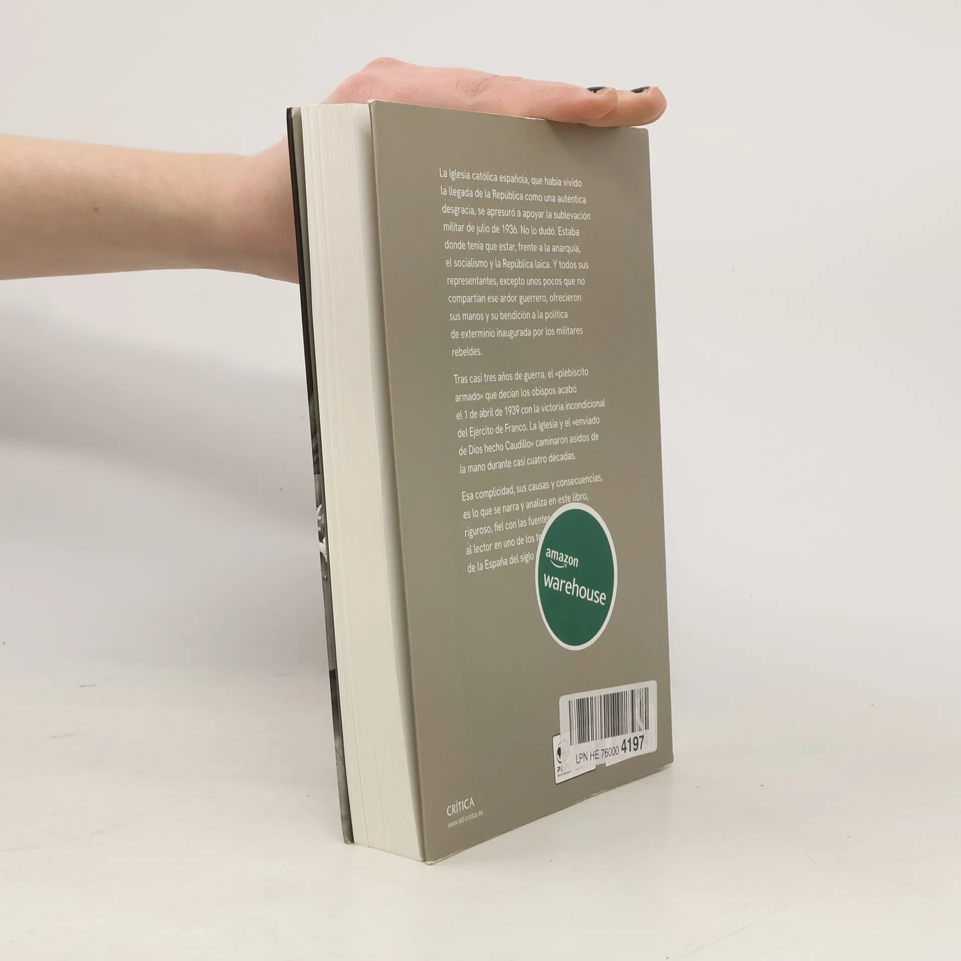La Iglesia católica española, que había vivido la llegada de la República como una auténtica desgracia, se apresuró a apoyar la sublevación militar de julio de 1936. No lo dudó. Estaba donde tenía que estar, frente a la anarquía, el socialismo y la República laica. Y todos sus representantes, excepto unos pocos que no compartían ese ardor guerrero, ofrecieron sus manos y su bendición a la política de exterminio inaugurada por los militares rebeldes. Tras casi tres años de guerra, el “plebiscito armado” que decían los obispos acabó el 1 de abril de 1939 con la victoria incondicional del Ejército de Franco. La Iglesia y el “enviado de Dios hecho Caudillo” caminaron asidos de la mano durante casi cuatro décadas. Esa complicidad, sus causas y consecuencias, es lo que se narra y analiza en este libro, riguroso, fiel con las fuentes, anotado ahora por primera vez, que sumerge al lector en uno de los temas fundamentales de la España del siglo XX.
