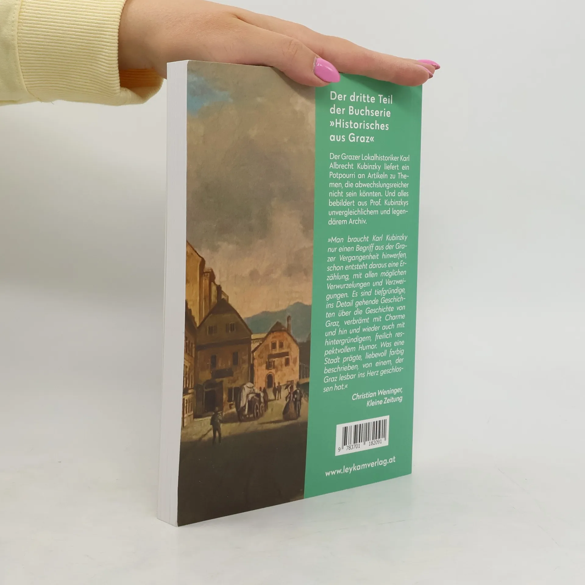 Graz: Weltstadt oder Provinz? Fortsetzung folgt, im vorliegenden Fall in Form des dritten Teils der Buchserie »Historisches aus Graz«. Der Grazer Lokalhistoriker Karl Albrecht Kubinzky liefert ein Potpourri an Artikeln zu Themen, die abwechslungsreicher nicht sein könnten: von der »Baugeschichte des Ungebauten« über historische Spaziergänge bis hin zur unvermeidlichen Frage, ob denn nun Graz eine Provinz- oder Weltstadt sei. Und alles farbig bebildert mit alten und neuen Bildern, Postkarten und Grafiken aus Professor Kubinzkys unvergleichlichem Archiv! Seit vielen Jahren schreibt er in der auflagenstarken Bürgerinformation Graz (BIG) des Magistrats Beiträge zur Grazer Stadtgeschichte und hat sich damit längst eine große Fangemeinde über die Grenzen der Stadt Graz hinaus geschaffen. Einzelne Beiträge erreichten Kultstatus und die ersten Auflagen seiner Bücher waren meist kurz nach Erscheinen vergriffen. Mit viel Humor und oft auch humorvoll verpackter Kritik ergeben die Texte mosaikartig ein neuartiges, faszinierendes und lesenswertes Bild von Graz.