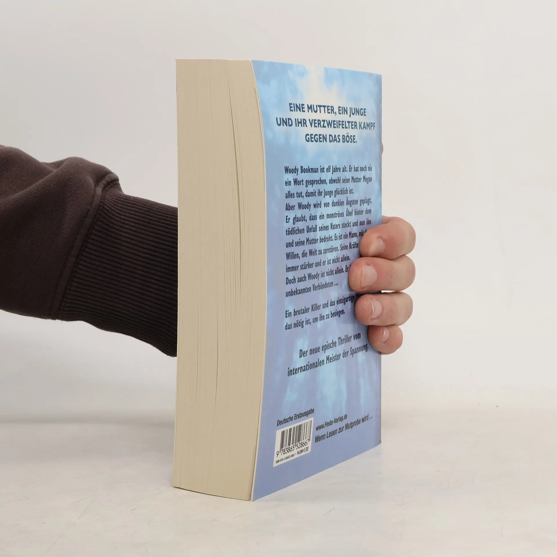 Eine Mutter, ein Junge und ihr verzweifelter Kampf gegen das Böse. Woody Bookman ist elf Jahre alt. Er hat noch nie ein Wort gesprochen, obwohl seine Mutter Megan alles tut, damit ihr Junge glücklich ist. Aber Woody wird von dunklen Ängsten geplagt. Er glaubt, dass ein monströses Übel hinter dem tödlichen Unfall seines Vaters steckt und nun ihn und seine Mutter bedroht. Es ist ein Mann, mit dem Willen, die Welt zu zerstören. Seine Kräfte werden immer stärker und er ist nicht allein. Doch auch Woody ist nicht allein. Er hat einen ihm unbekannten Verbündeten … Ein brutaler Killer und das einzigartige Mitgefühl, das nötig ist, um ihn zu besiegen. Der neue epische Thriller vom internationalen Meister der Spannung. The Times: »Dean Koontz ist nicht nur der Experte für unsere dunkelsten Träume, sondern auch ein literarischer Meister.«