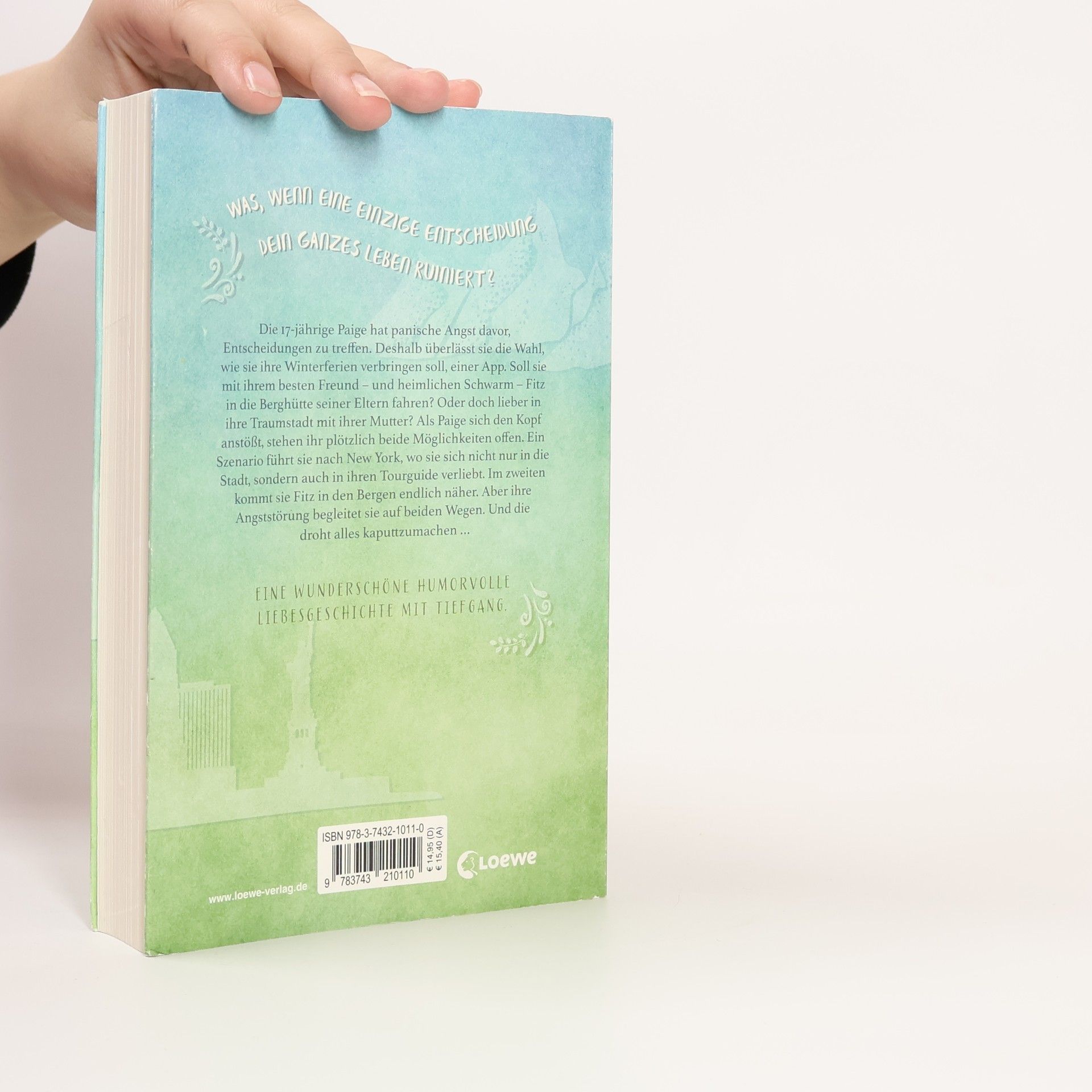 Das Buch ist bei deiner Buchhandlung vor Ort und bei vielen Online-Buchshops erhältlich! Humorvolle Liebesgeschichte mit Tiefgang Was, wenn eine einzige Entscheidung dein ganzes Leben ruiniert? Die 17-jährige Paige hat panische Angst davor, Entscheidungen zu treffen. Deshalb überlässt sie die Wahl, wie sie ihre Winterferien verbringen soll, einer App. Soll sie mit ihrem besten Freund – und heimlichen Schwarm – Fitz in die Berghütte seiner Eltern fahren? Oder doch lieber in ihre Traumstadt mit ihrer Mutter? Als Paige sich den Kopf anstößt, stehen ihr plötzlich beide Möglichkeiten offen. Ein Szenario führt sie nach New York, wo sie sich nicht nur in die Stadt, sondern auch in ihren Tourguide verliebt. Im zweiten kommt sie Fitz in den Bergen endlich näher. Aber ihre Angststörung begleitet sie auf beiden Wegen. Und die droht alles zu ruinieren ... Eine tiefgründige Liebesgeschichte für Jugendliche ab 14 Jahren mit viel Humor, die sich mit den Themen Angststörung und der Vielfalt von Möglichkeiten beschäftigt. Warmherzig erzählt Kara McDowell in verschiedenen Handlungssträngen zwei Wege zum Glück ihrer Protagonistin, die sich jedoch zuvor ihren Ängsten stellen und Verantwortung für ihr eigenes Leben übernehmen muss.