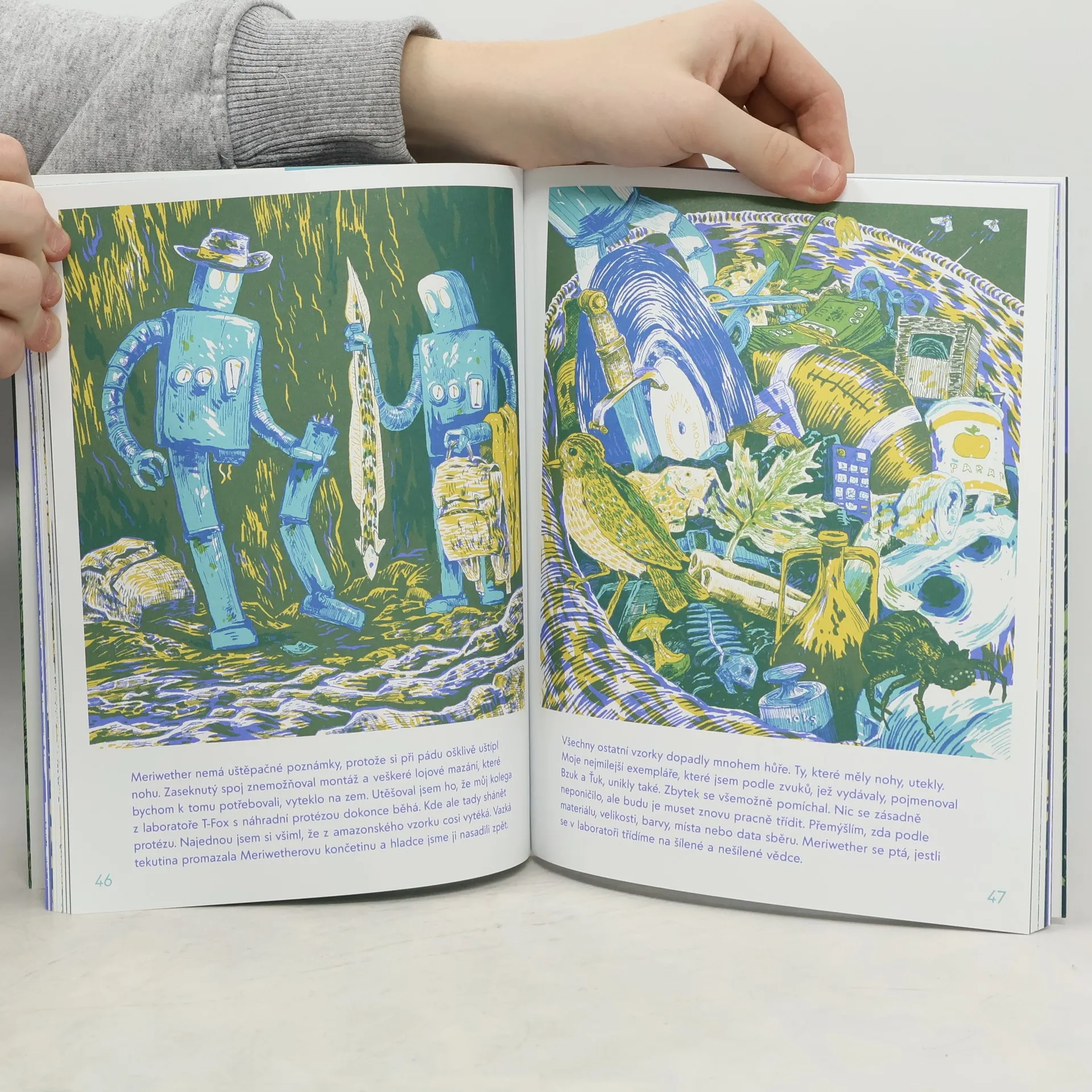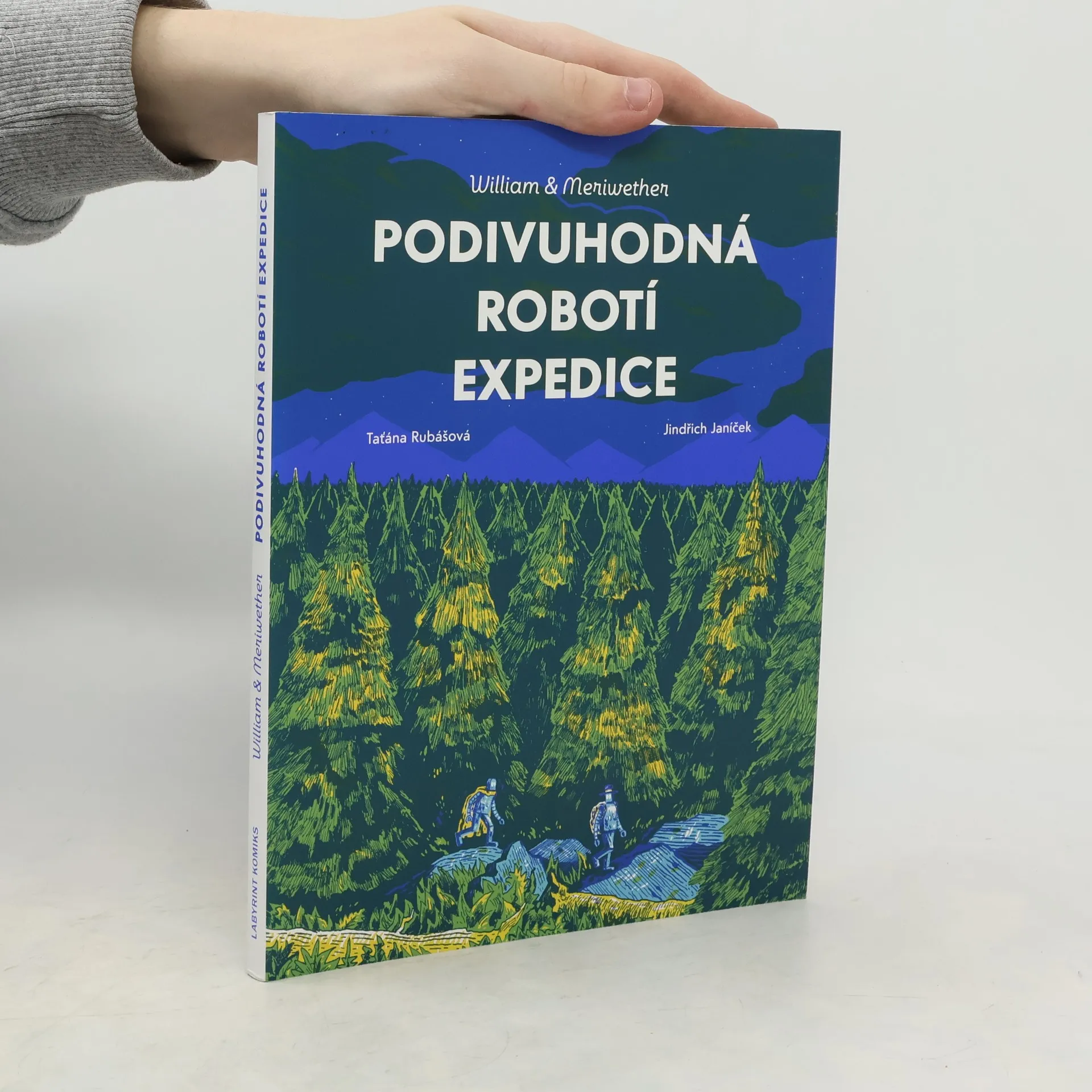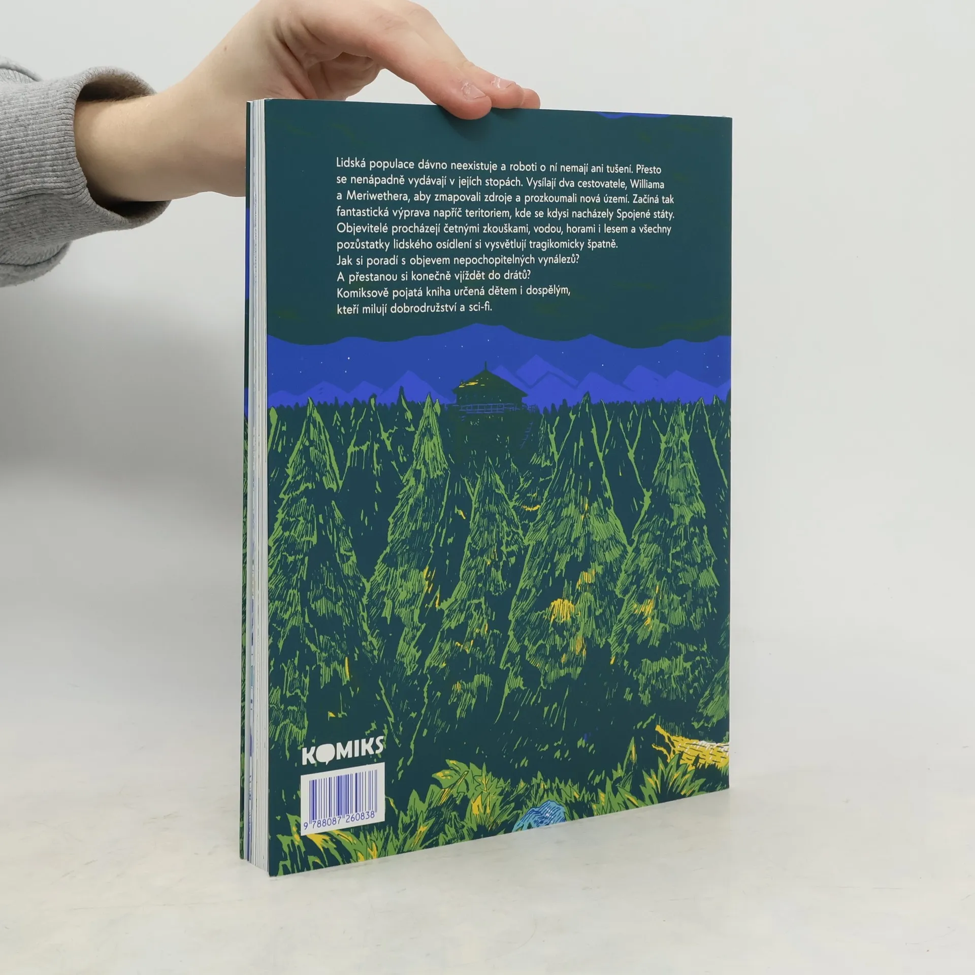 Lidská populace dávno neexistuje a roboti o ní nemají ani tušení. Přesto se nenápadně vydávají v jejích stopách. Vysílají dva cestovatele, Williama a Meriwethera, aby zmapovali zdroje a prozkoumali nová území. Začíná tak fantastická výprava napříč teritoriem, kde se kdysi nacházely Spojené státy. Objevitelé procházejí četnými zkouškami, vodou, horami i lesem a všechny pozůstatky lidského osídlení si vysvětlují tragikomicky špatně. Jak si poradí s objevem nepochopitelných vynálezů? A přestanou si konečně vjíždět do drátů? Komiksově pojatá kniha určená dětem i dospělým, kteří milují humor, dobrodružství a sci-fi.