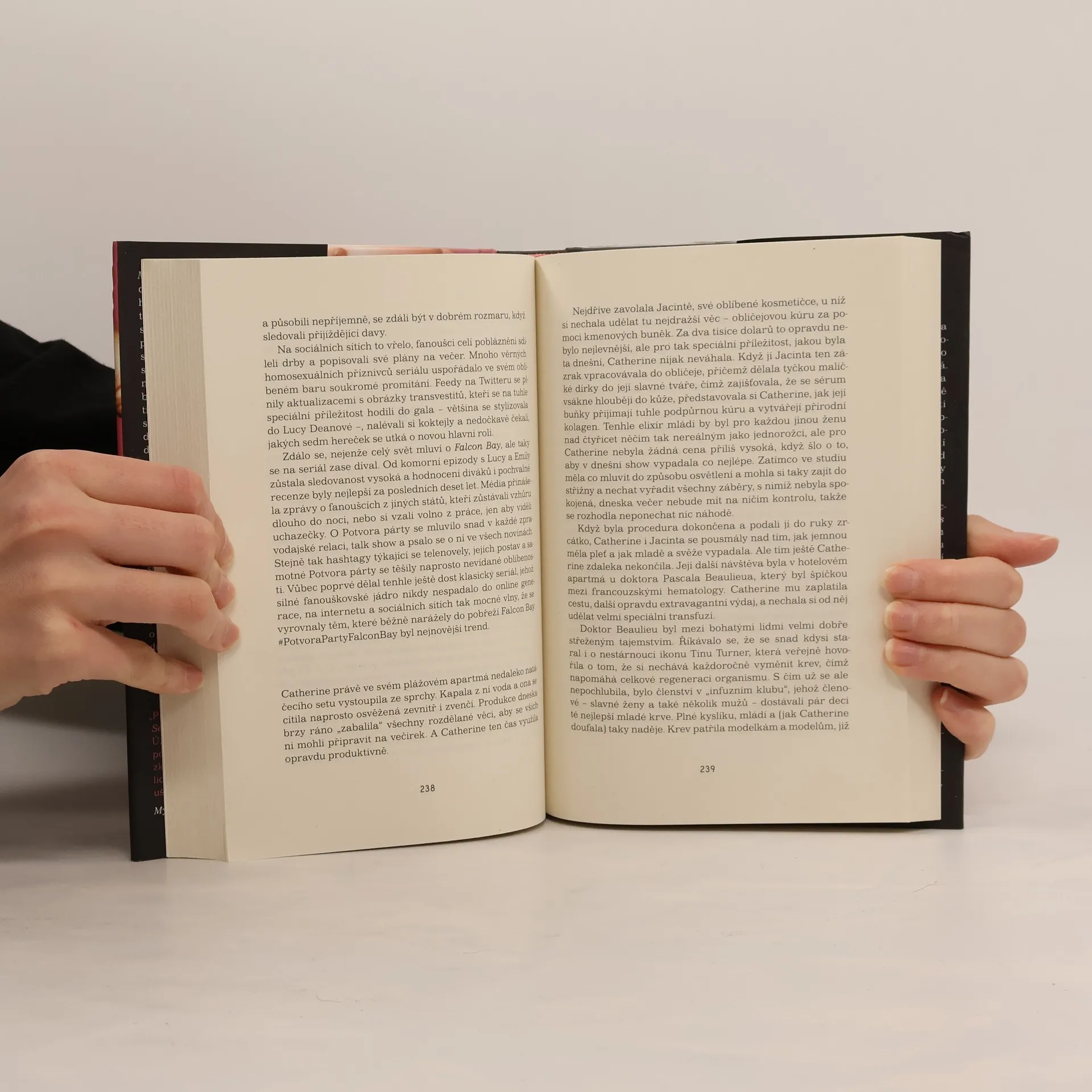 Mrchy Melanie Blakeové nás zavedou do zákulisí světa veleúspěšného seriálového dramatu Falcon Bay, telenovely, kterou zná celý svět. Má sice miliony věrných fanoušků, ale pravdou je i to, že dny výsluní a slávy seriálu jsou dávno pryč. Falcon Bay se natáčí doslova v ráji – na soukromém ostrově v kanálu La Manche, blízko poloostrova Jersey; dokonalá destinace pro dokonalou telenovelu ale sama o sobě není vším. Po více než dvaceti letech vysílání docházejí produkci nápady i šťáva a sledovanost strmě klesá. Je potřeba přijít s dokonalým plánem a scenáristickým zázrakem. Ideálně se zajímavou postavou, která nenechá kámen na kameni. Do soukolí navíc vstupuje nová americká majitelka, rozhodnutá udělat všechno, aby se seriál stal opět jedničkou v žebříčcích sledovanosti. Televizní svět ale dávno není jen o talentu, dobré práci, skvělých nápadech a radosti z tvorby a hraní; je tvrdý a drsný. Mnohem více spíše o penězích, dravosti, neohlížení se na druhé – a intrikách. Hlavně tedy o tom, kdo je schopný čeho – a kdo umí kde mistrně zatahat za ty správné nitky, obrátit se na ty správné lidi.