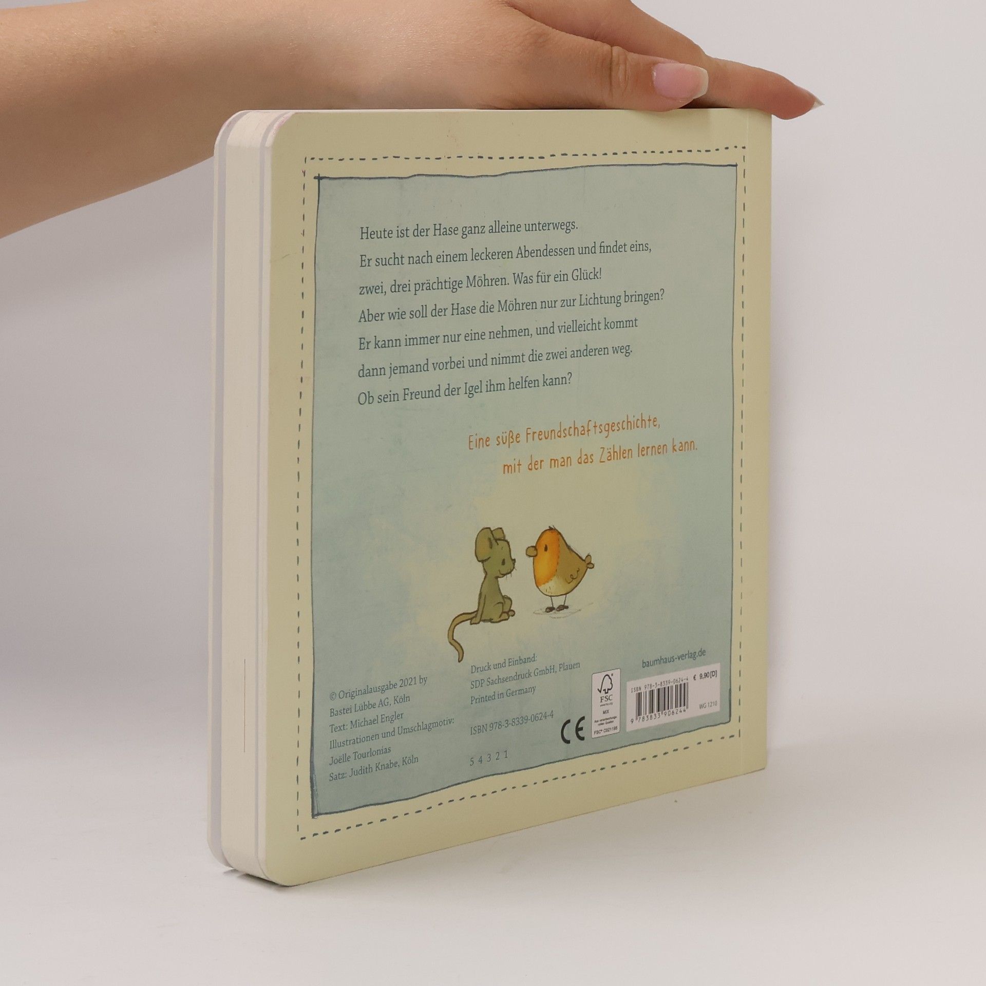 Geschichten von Hase und Igel extra für die ganz Kleinen - Heute ist der Hase ganz alleine unterwegs. Er sucht nach einem leckeren Abendessen und findet eins, zwei, drei prächtige Möhren. Was für ein Glück! Aber wie soll der Hase die Möhren nur zur Lichtung bringen? Er kann immer nur eine nehmen, und vielleicht kommt dann jemand vorbei und nimmt die zwei anderen weg. Ob sein Freund der Igel ihm helfen kann? Eine süße Freundschaftsgeschichte, mit der man das Zählen lernen kann und erstes logisches Denken gefördert wird.
