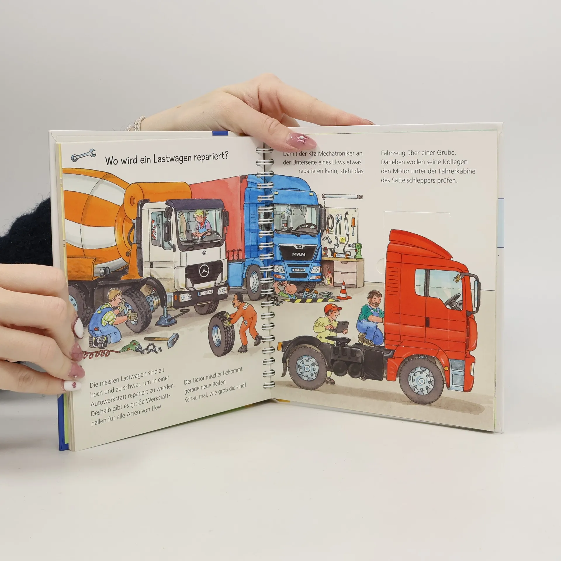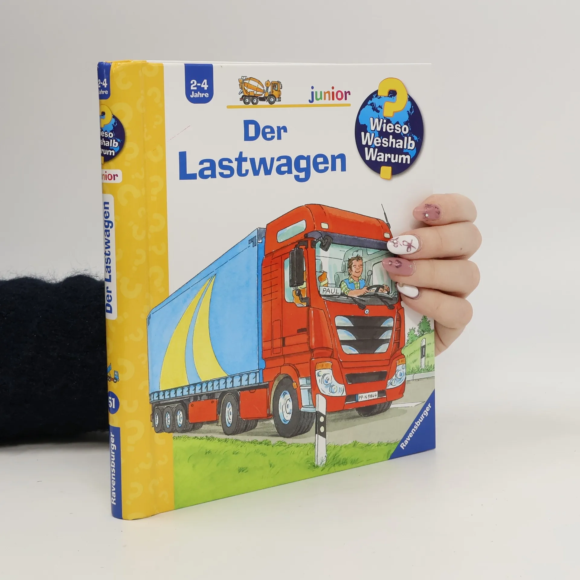 „Rumms“ schließt sich die Ladeklappe zum Frachtraum des Lkws. Lastwagen transportieren schwere Güter und wir sehen sie auf jeder Autobahn. Kinder erfahren in diesem Sachbilderbuch, wie Laster be- und entladen werden, wie man die Kolosse abschleppt und repariert – und wie es ist, im Sattelschlepper zu übernachten. Stabile Klappen erwecken auch Laster auf der Baustelle zum Leben. Ein neues Lieblingsbuch für kleine Fahrzeug- und Technikfans. Wieso? Weshalb? Warum? junior Die Sachbuchreihe für Kinder von 2-4 Jahren Jeden Tag entdecken Kinder etwas Neues – und haben viele Fragen. Wann kommt die Feuerwehr? Was machen die Tiere im Winter? Warum muss ich Zähne putzen? Die beliebte Sachbuchreihe Wieso? Weshalb? Warum? junior beantwortet die Fragen der Kinder auf Augenhöhe. Sie beleuchtet unterschiedlichste Themen aus ihrer Alltags- und Interessenswelt altersgerecht und mit viel Liebe zum Detail. Die Reihe ist speziell auf kleine Hände und die Bedürfnisse der Kleinsten angepasst. Klare und liebevolle Bilder, kurze Sachtexte sowie handliche Klappen, die Bewegungen veranschaulichen und überraschende und lustige Einblicke gewähren, ermöglichen Kindern, sich ihre Themen selbst zu erschließen. Der Spaß am eigenhändigen Entdecken, die liebevolle Umsetzung und die hochwertige Ausstattung garantieren langanhaltende Freude an jedem Buch.