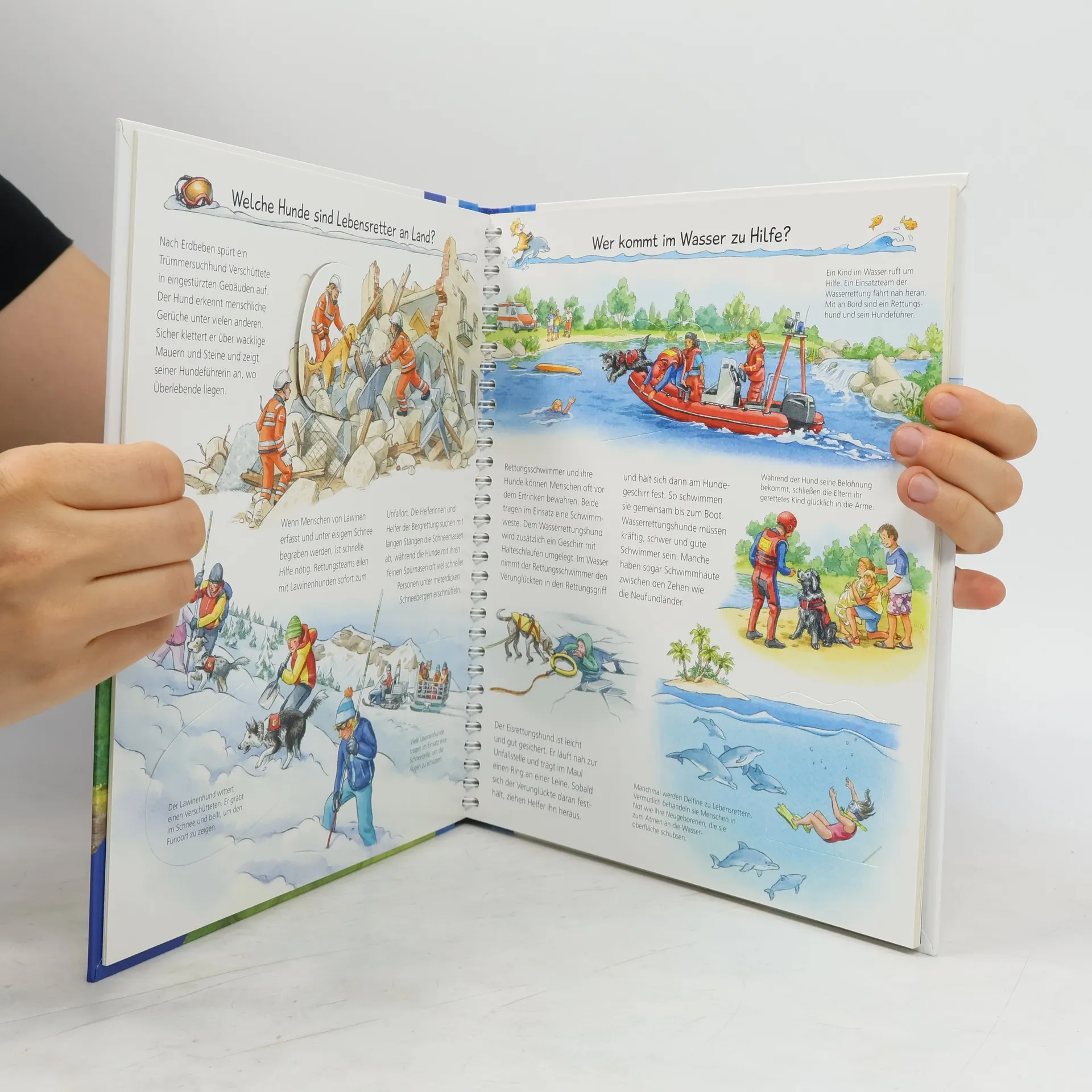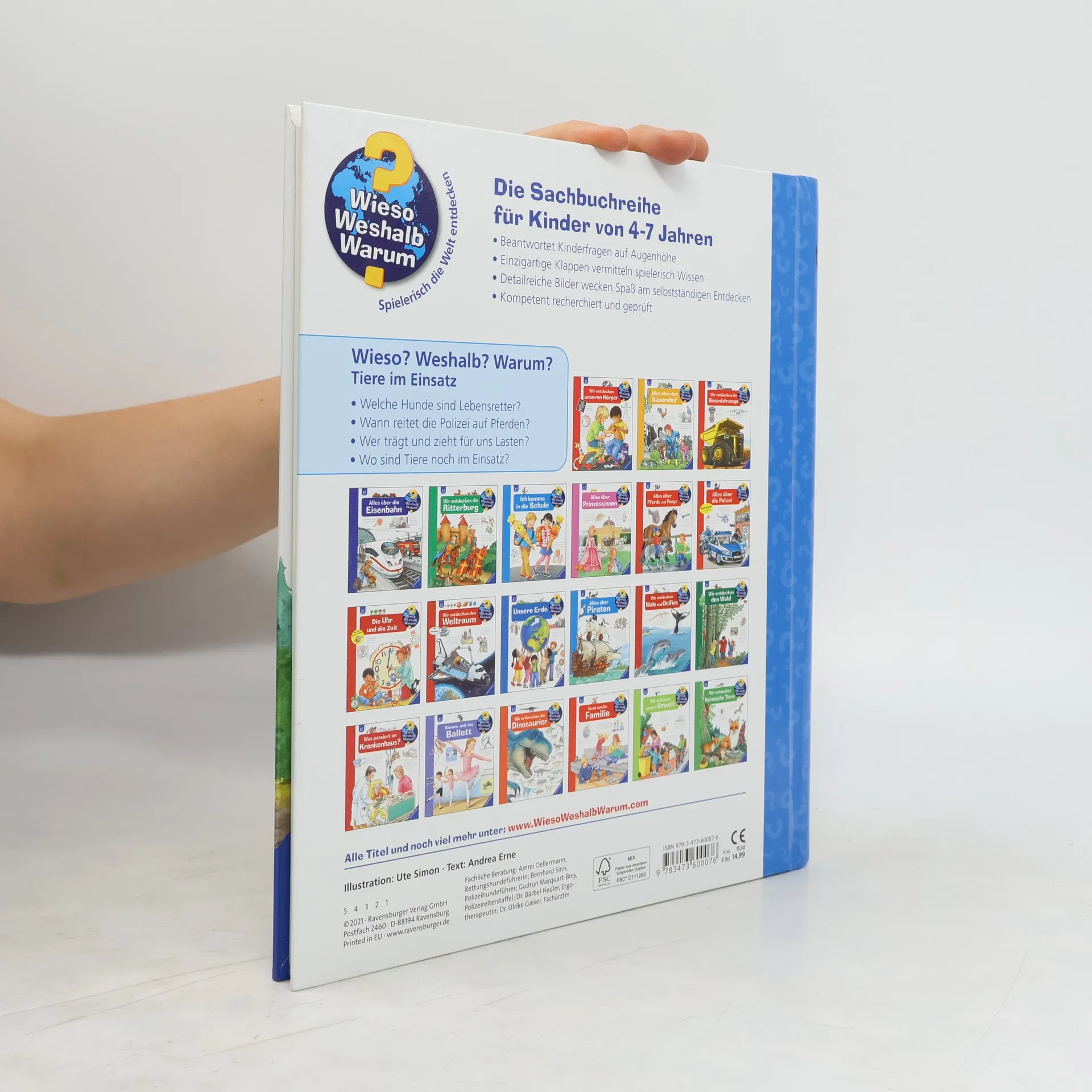 Mit Spürnase, Stärke und Einfühlungsvermögen stehen Tiere uns Menschen jeden Tag zur Seite. Ochse, Esel und Dromedar tragen und ziehen für uns Lasten, während Hütehunde, Lamas und Gänse aufpassen und beschützen. Mithilfe von Klappen entdecken Kinder, wie Polizeipferde eine Demo begleiten, Rettungshunde Vermisste aufspüren und Therapie-Alpakas beim Heilen helfen. Und sie sind dabei, wenn Tier und Mensch für diese Aufgaben gemeinsam trainieren.