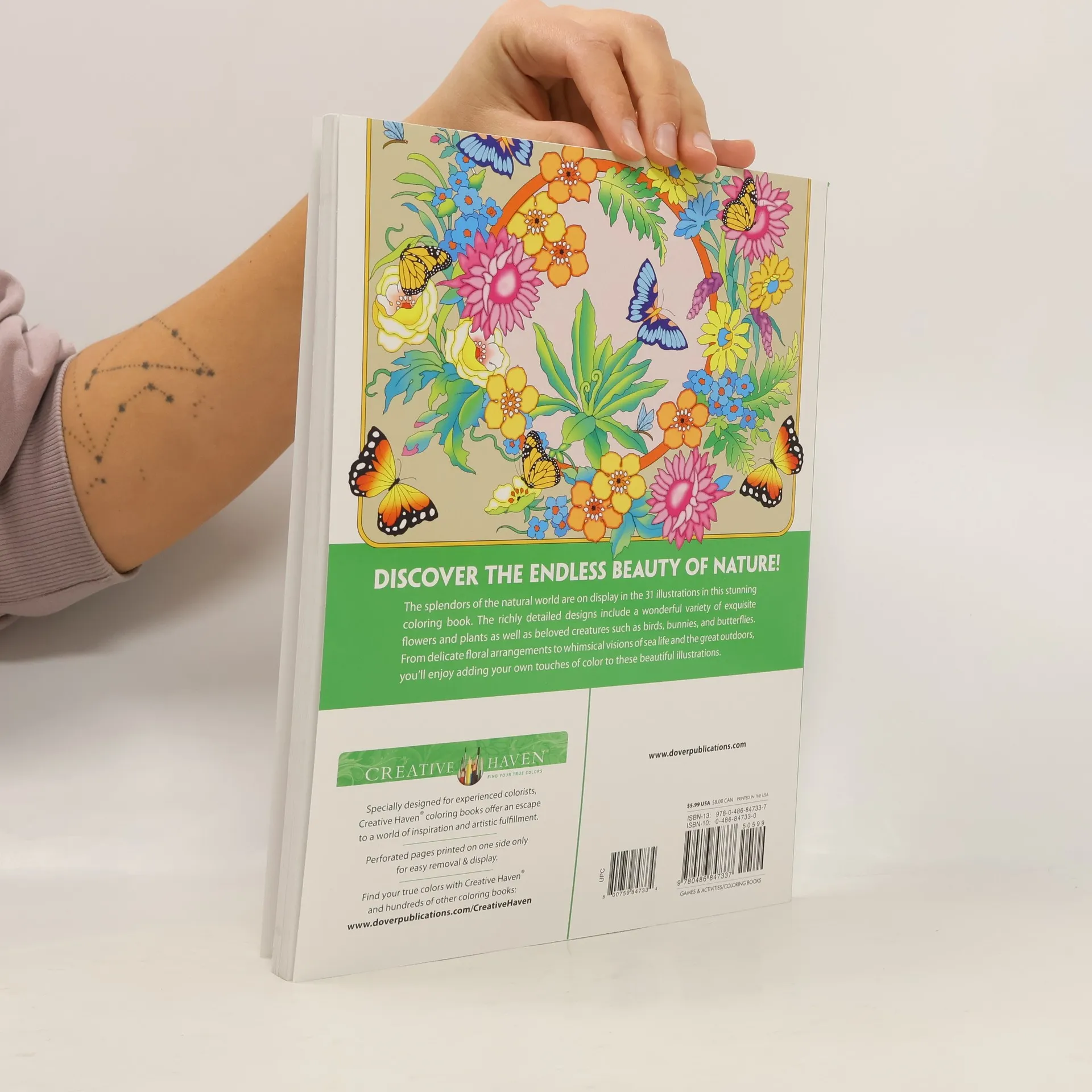 Enjoy the splendor of nature and all its beauty with 31 stunning illustrations that invite you into the great outdoors. The dazzling designs are filled with a wonderful variety of flora and fauna just waiting for color to bring them to life, including butterflies, fruits and vegetables, beautiful blooms and much more. Pages are perforated and printed on one side only for easy removal and display. Specially designed for experienced colorists, Joys of Nature and other Creative Haven® adult coloring books offer an escape to a world of inspiration and artistic fulfillment. Each title is also an effective and fun-filled way to relax and reduce stress.