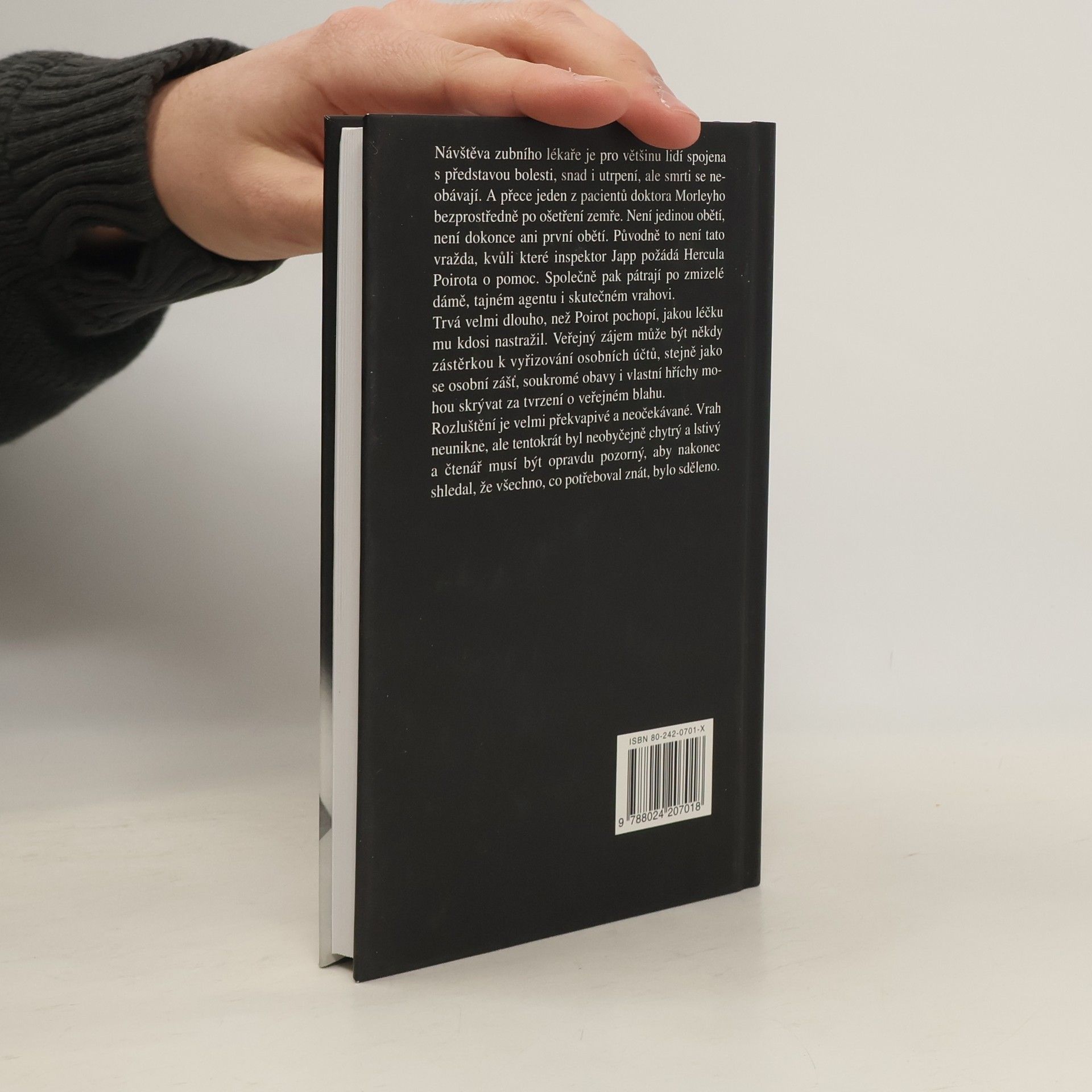 Návštěva zubního lékaře je pro většinu lidí spojena s představou bolesti, snad i utrpení, ale smrti se neobávají. A přece jeden z pacientů doktora Morleyho bezprostředně po ošetření zemře. A není jedinou obětí… Původně to není tento případ, kvůli němuž inspektor Japp požádá Hercula Poirota o pomoc. Společně pak pátrají po zmizelé dámě, tajném agentu i vrahovi. Trvá dlouho, než Poirot pochopí, jakou léčku mu kdosi nastražil. Veřejný zájem může být někdy zástěrkou k vyřizování osobních účtů, stejně jako se osobní zášť, soukromé obavy i vlastní hříchy mohou skrývat za tvrzení o veřejném blahu. Rozluštění je překvapivé. Vrah byl tentokrát mimořádně chytrý a lstivý a čtenář musí číst opravdu pozorně, aby nakonec shledal, že všechno, co potřeboval znát, bylo sděleno.... celý text