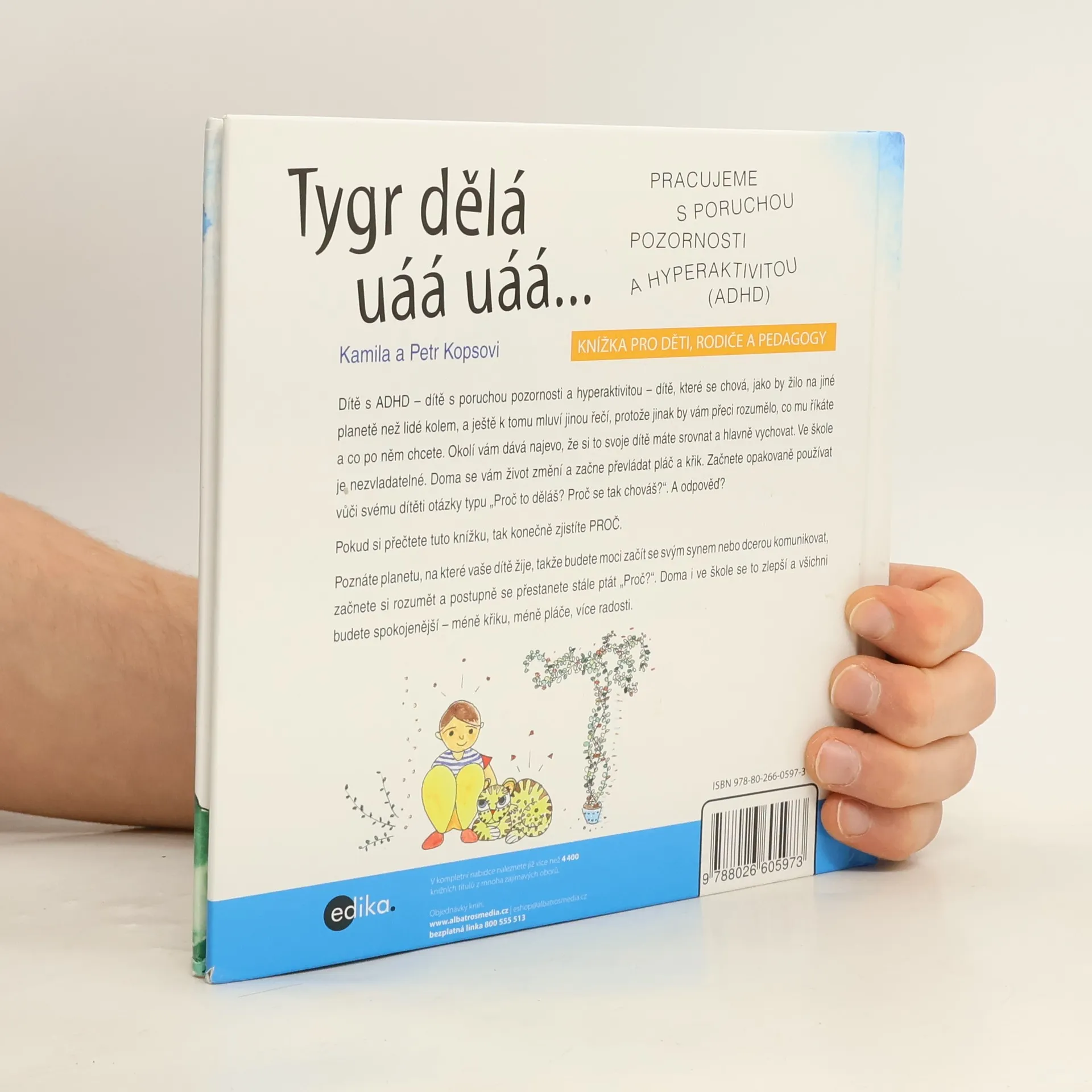 Nejžhavějším tématem současnosti, které se dotýká téměř všech rodičů, pedagogů a samozřejmě mnoha dětí, je ADHD. Strašák, který děsí rodiče i pedagogy. Kniha „Tygr dělá uáá uáá…“ je ojedinělým náhledem do dětské duše, napsaná podle skutečných příběhů dětí právě s tímto syndromem, a to především ve formě hyperaktivity. Hlavním hrdinou příběhu je šestiletý školák Jakub. Postupně seznamuje čtenáře s tím, jak on jako dítě prožívá stav, kterému se říká syndrom ADHD, hyperaktivita. Je to vnitřní svět chlapce, který je sice před rodiči ukrytý, zároveň se ale výrazně projevuje navenek. Kniha čtenářům ukazuje, že pokud problém odhalíme, zároveň objevíme i způsob, jak se s ním vypořádat. A v tom spočívá cenný přínos této publikace. Mile ilustrovaná kniha je výborným pomocníkem rodičů i pedagogů, ale též inspirací pro samotné děti.
